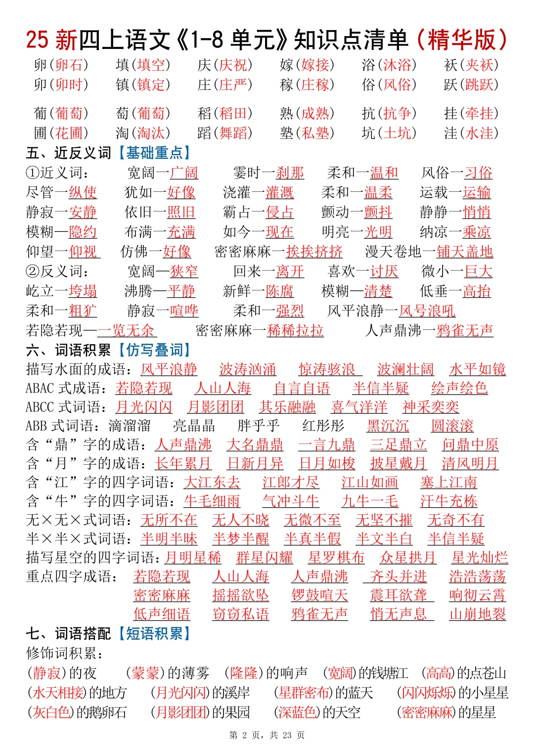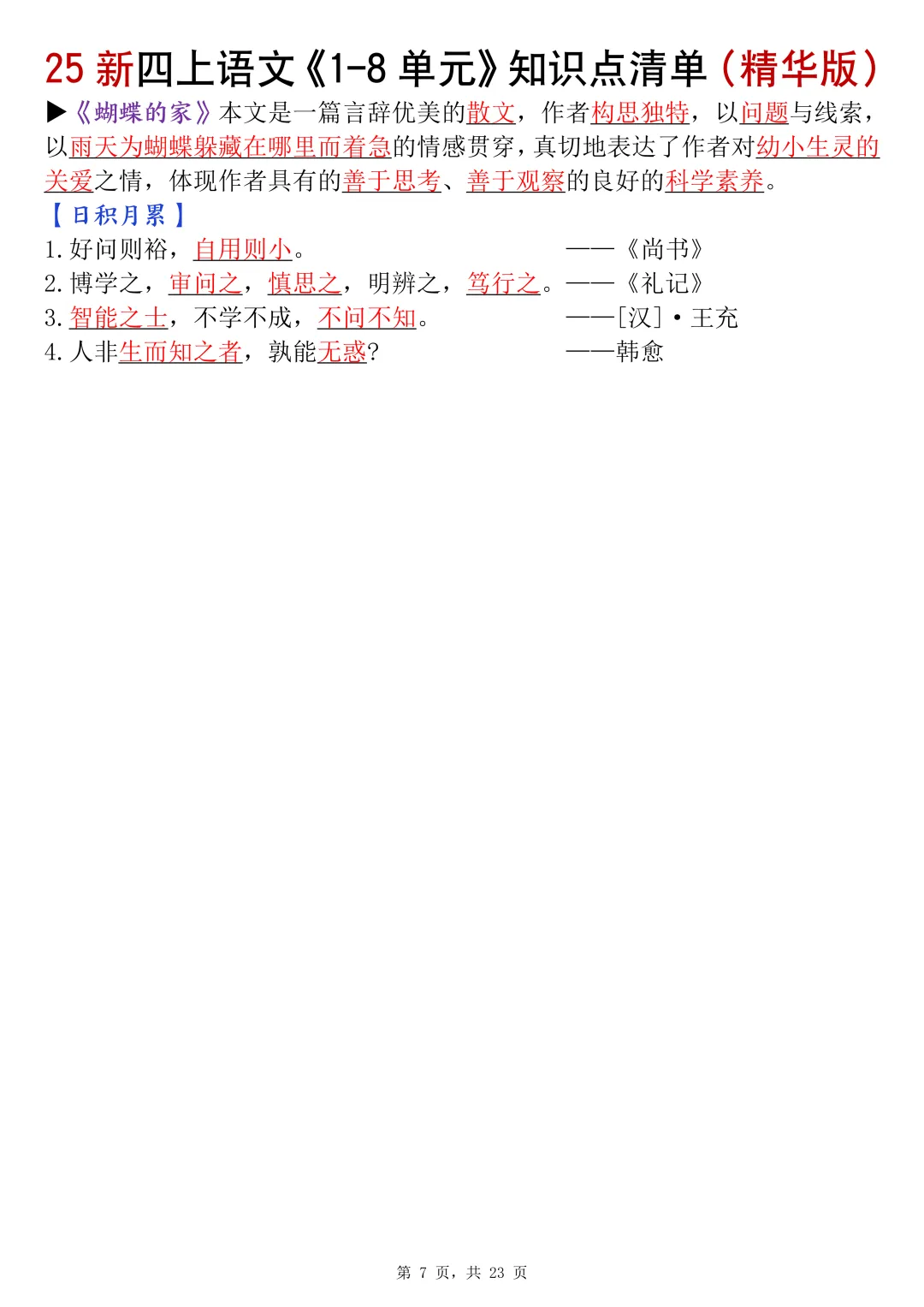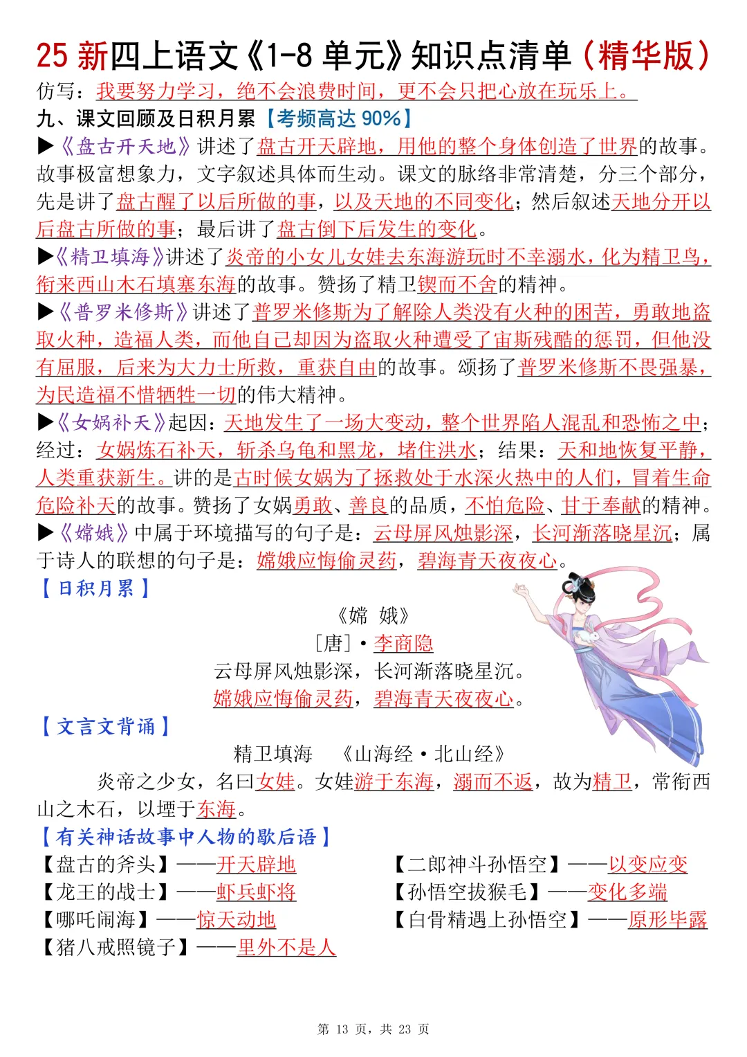 复习资料,四年级上册语文期末总复习知识点整理(含答案)48页可打印PDF