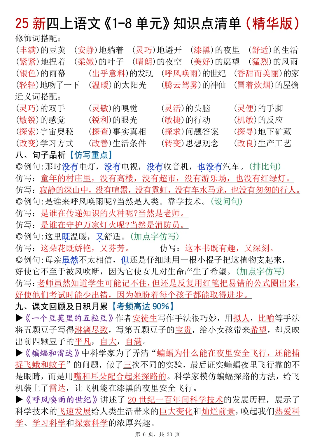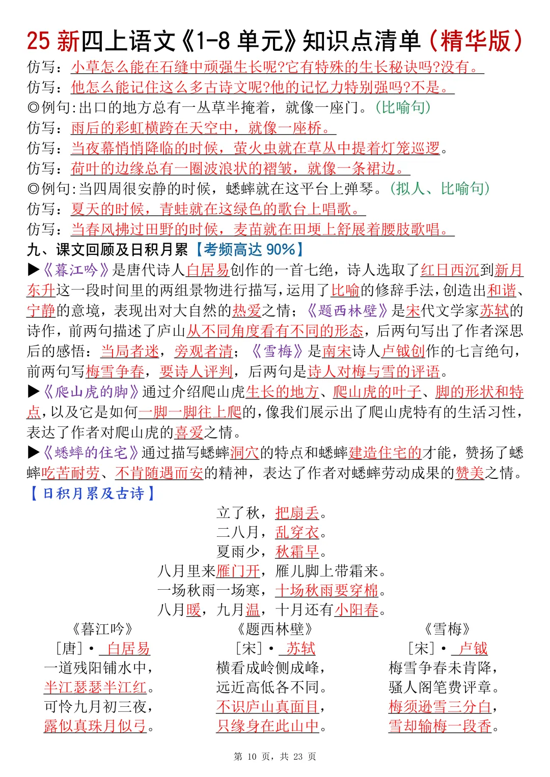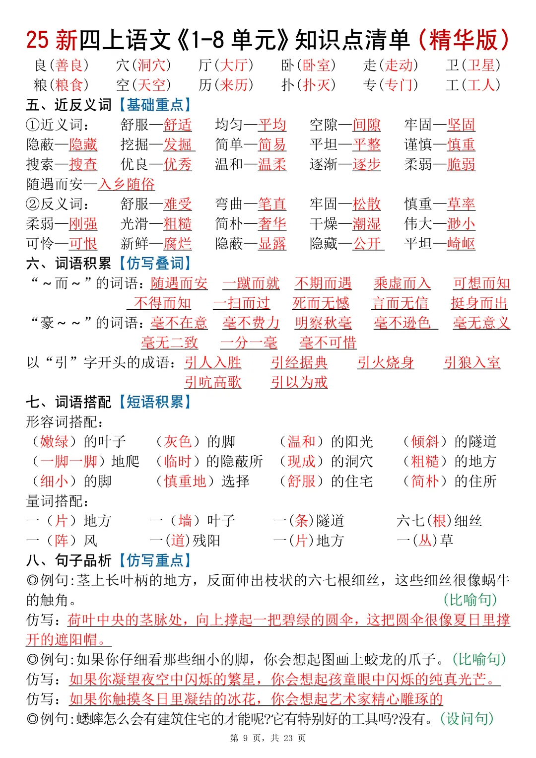 复习资料,四年级上册语文期末总复习知识点整理(含答案)48页可打印PDF