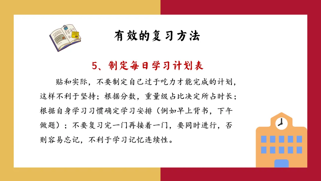 好的复习方法能够事半功倍。我们要掌握一些有效的复习方法,提高复习效率。