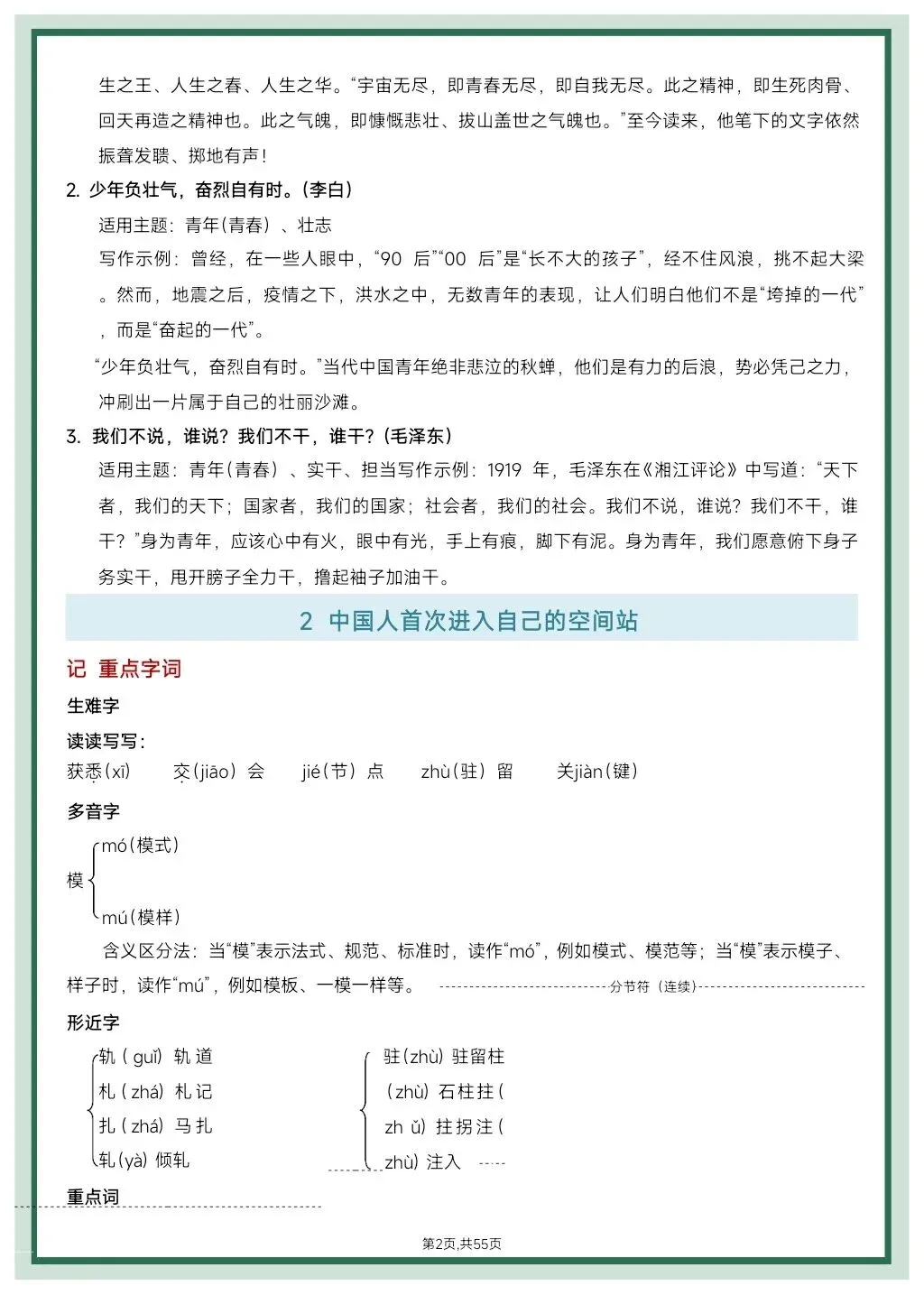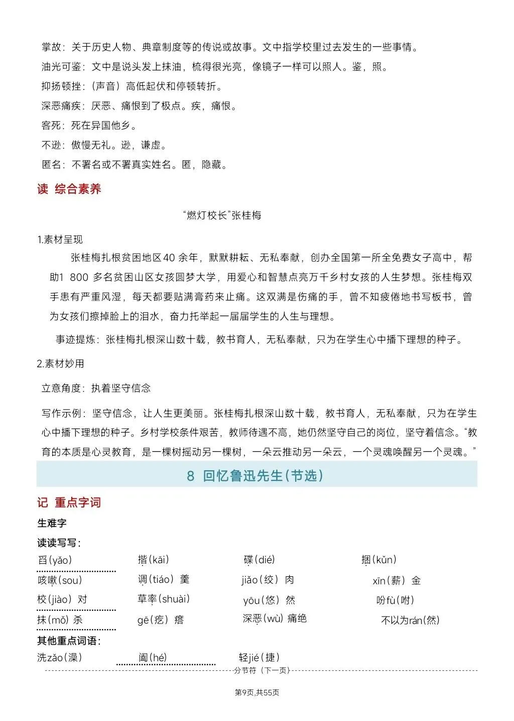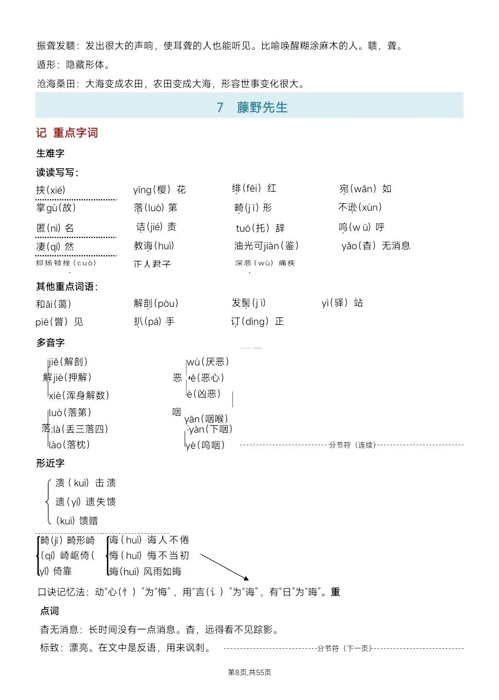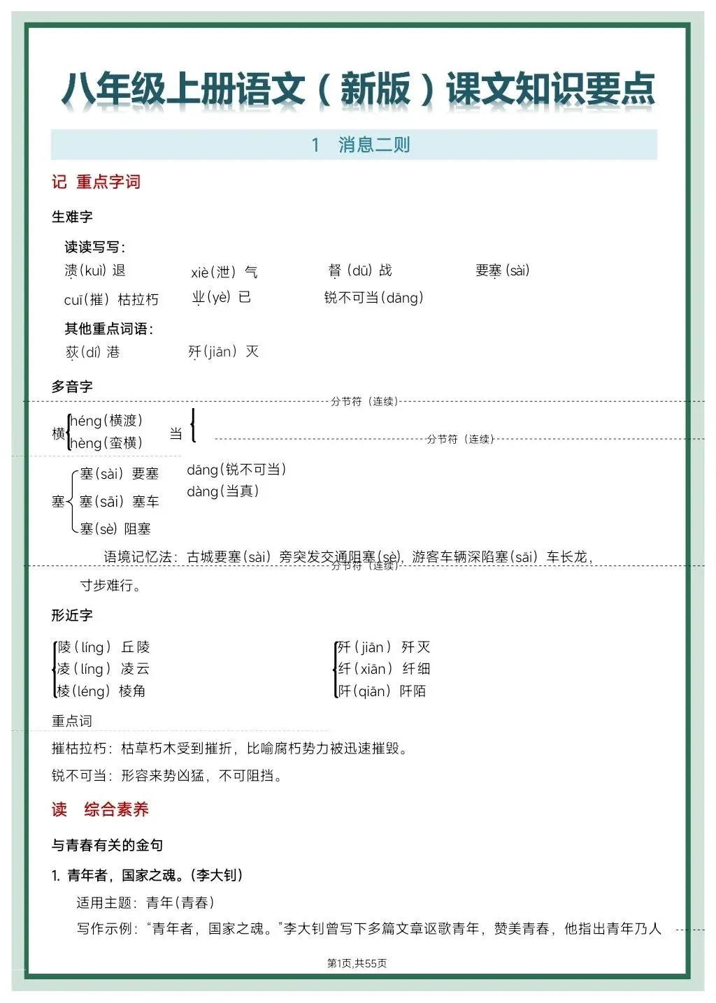 这份八年级上册语文课文知识要点总复习资料,太全面了!