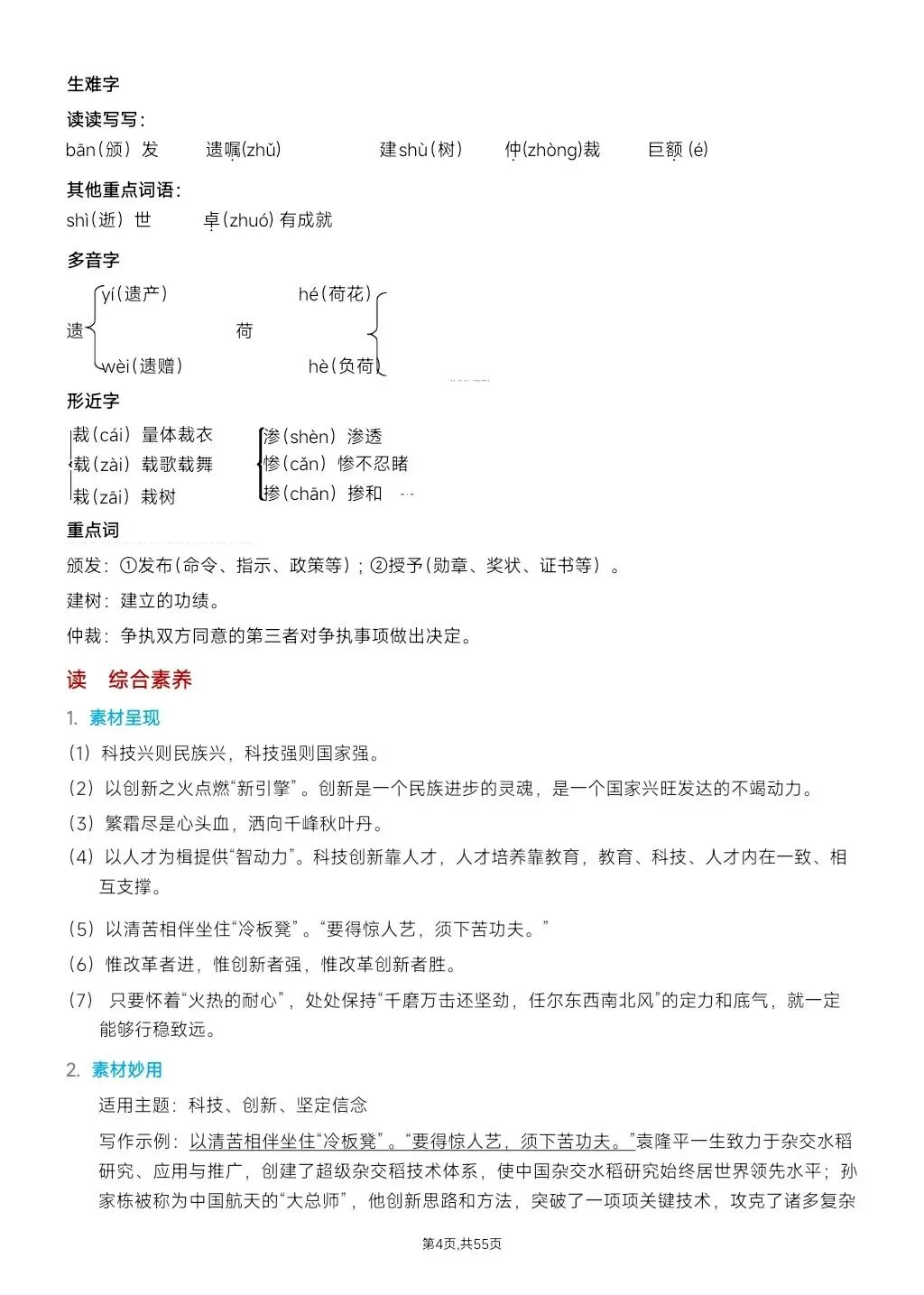 复习资料,四年级上册语文期末总复习知识点整理(含答案)48页可打印PDF