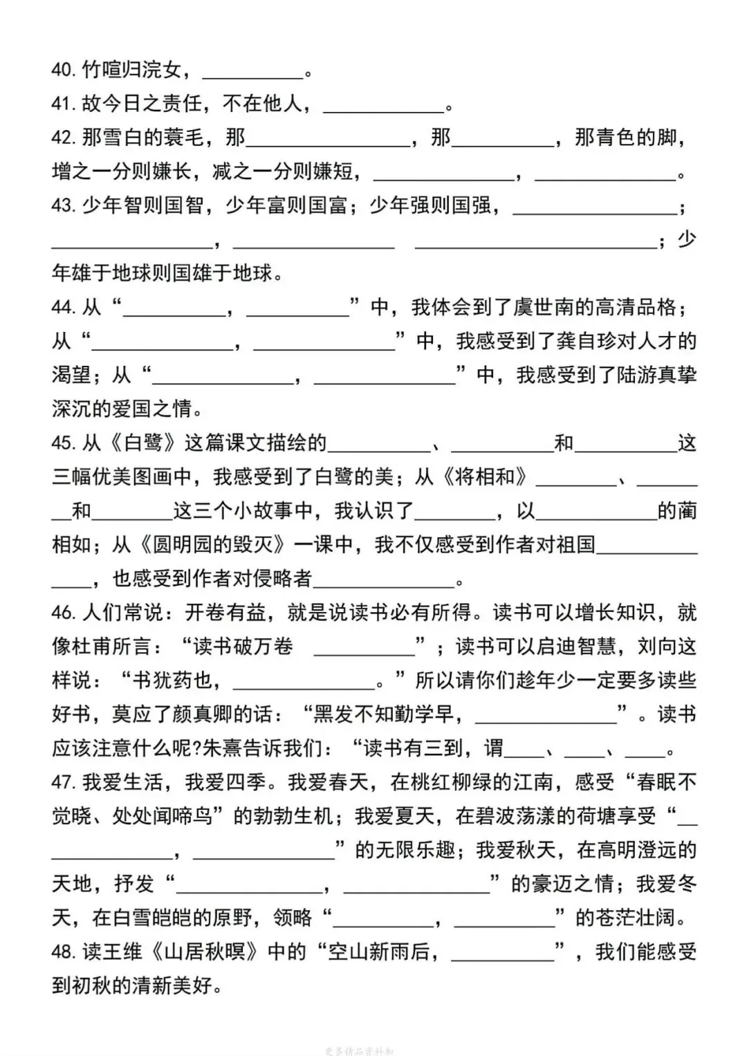 可打印的初二语文文言诗词复习资料