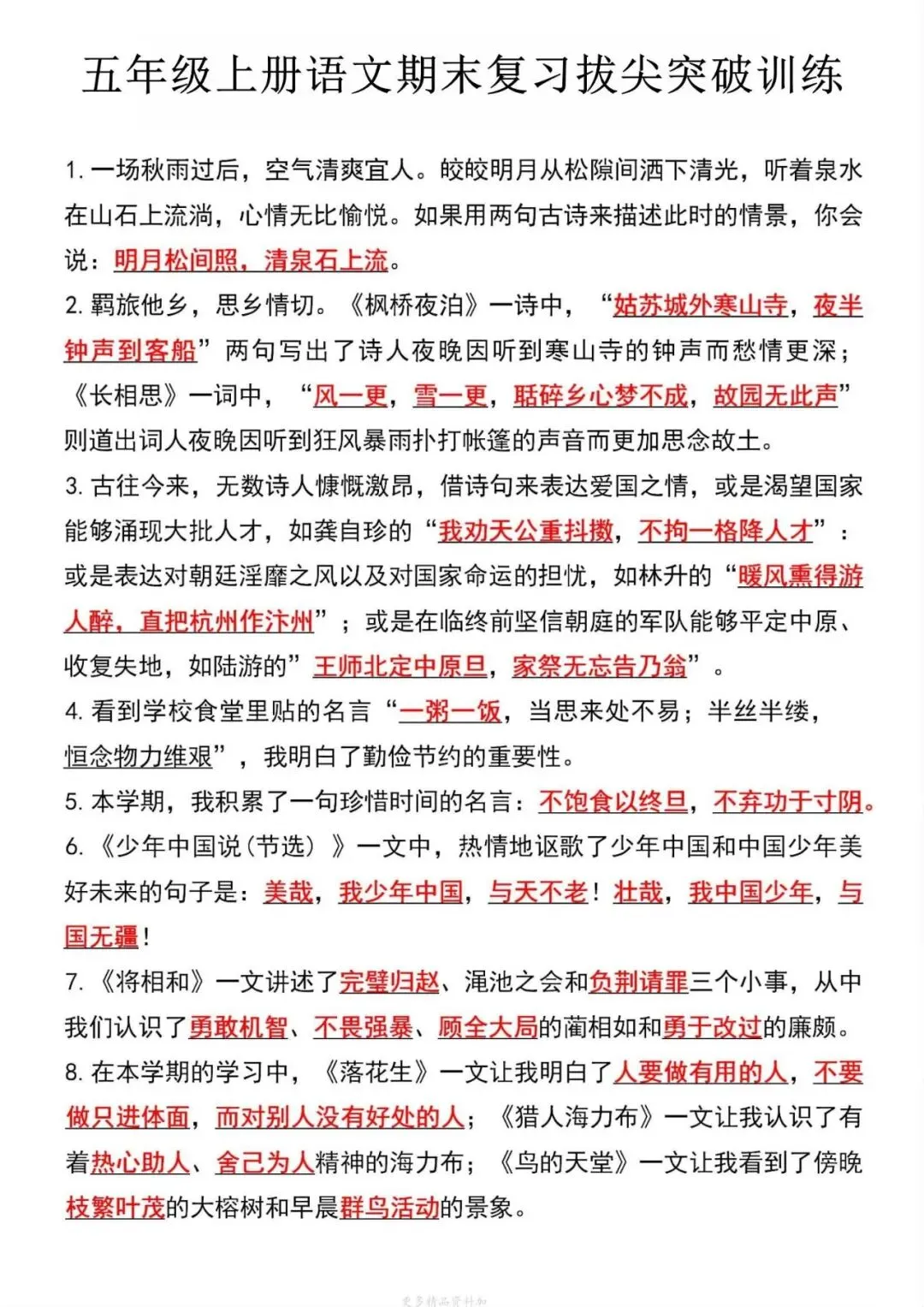 【资料整理】五年级上册语文期末复习拔尖突破训练