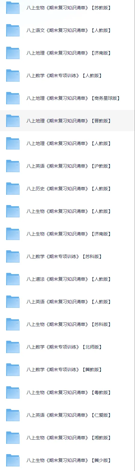 今天给大家分享的是八年级上《期末复习资料》语数英+小四门链接:https://pan.quark.cn/s/5a0f7430295c本微信公众账号分享的资源均通过网络等公共合法渠道获得,仅供试用!版权属于原出版机构或影像公司,本资源为电子载体,传播分享仅限于家庭使用与交流心得、参考和辅助购买决策,不得以任何理由在商业行为中使用,若喜欢此资源,建议购买实体产品。文章中的视频及图片均来自网络,版权归原作者或原出版社所有。如有侵权,请及时联系删除。
