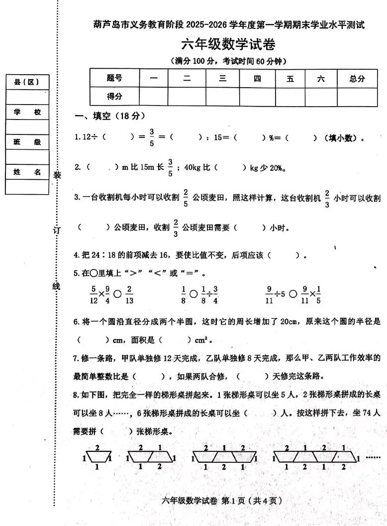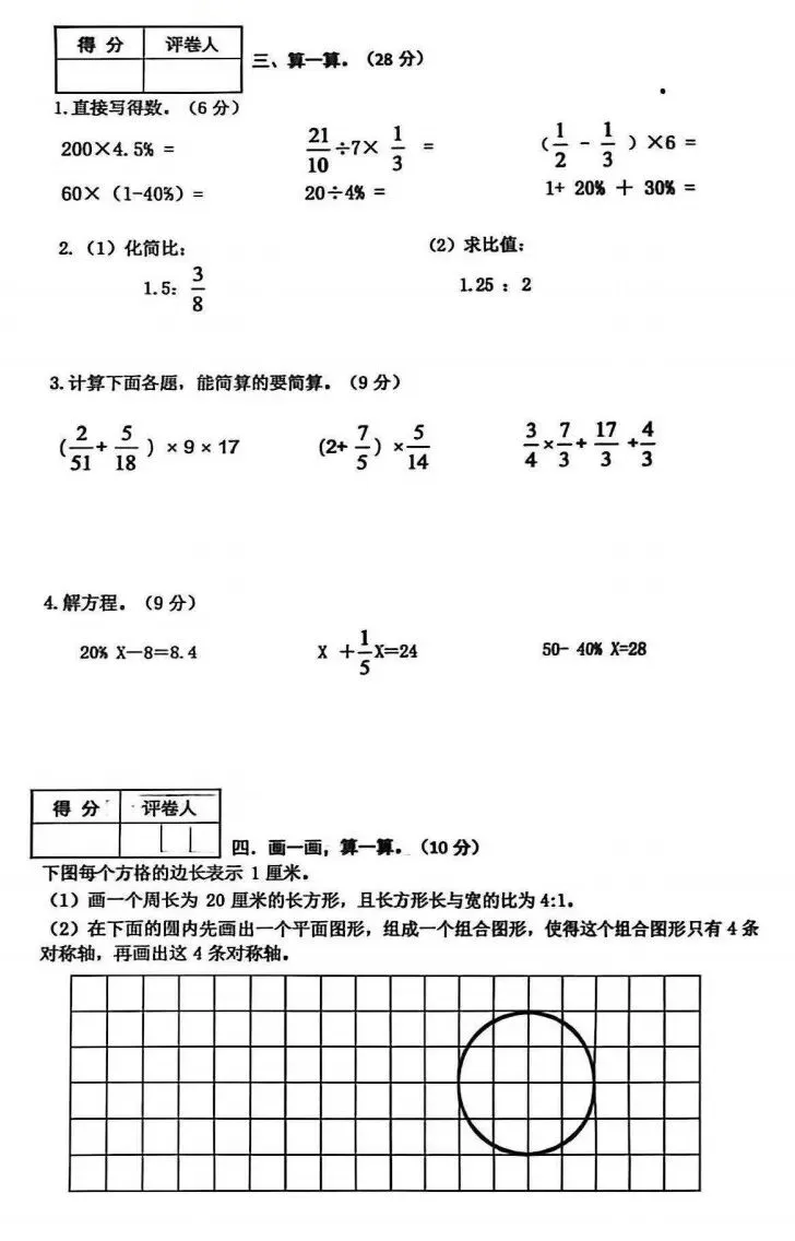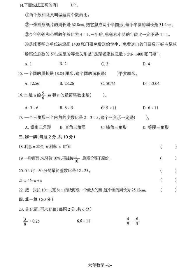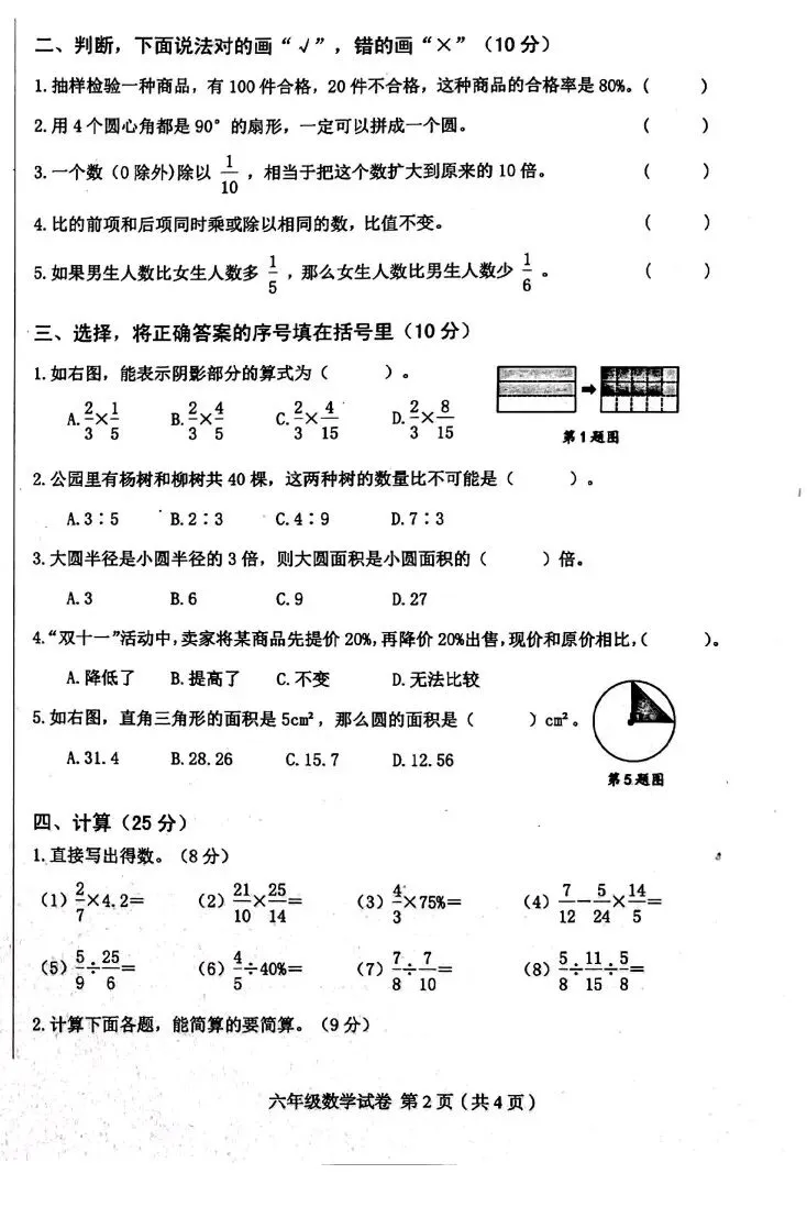 「6上数学期末冲刺每日一练,刚考完的期末试题,判断题等合集来了