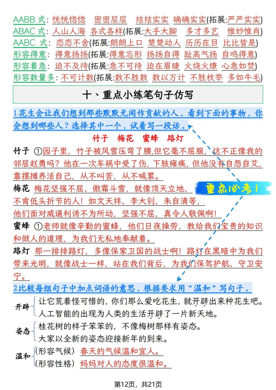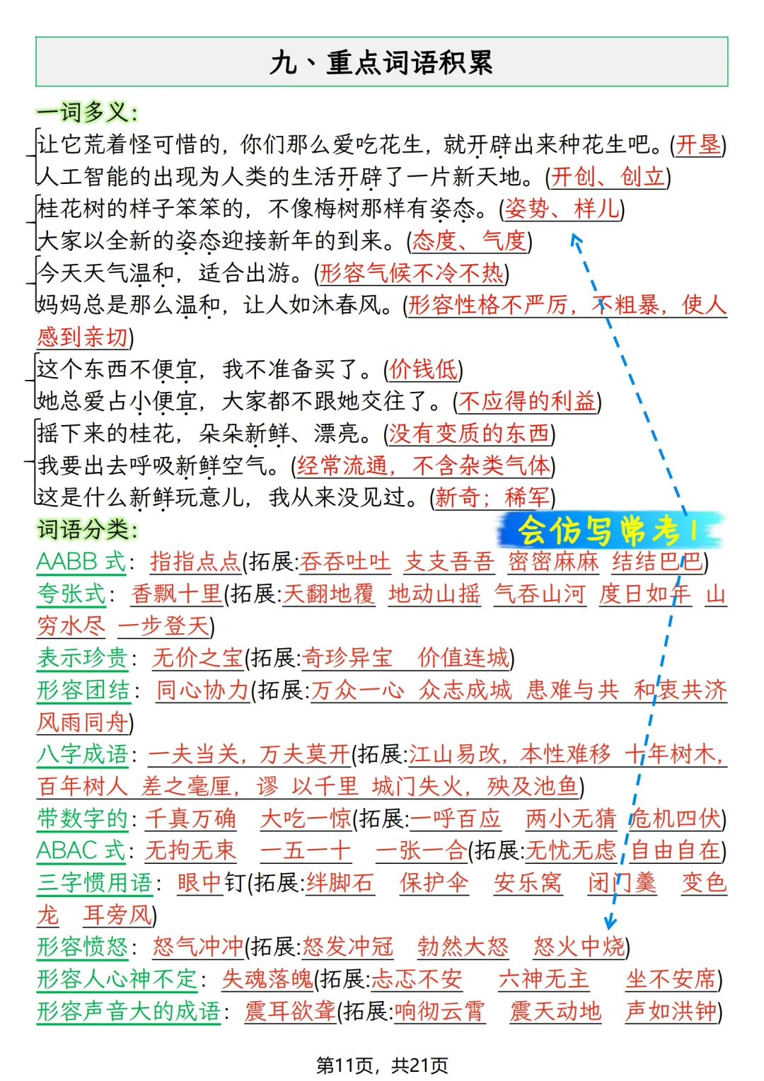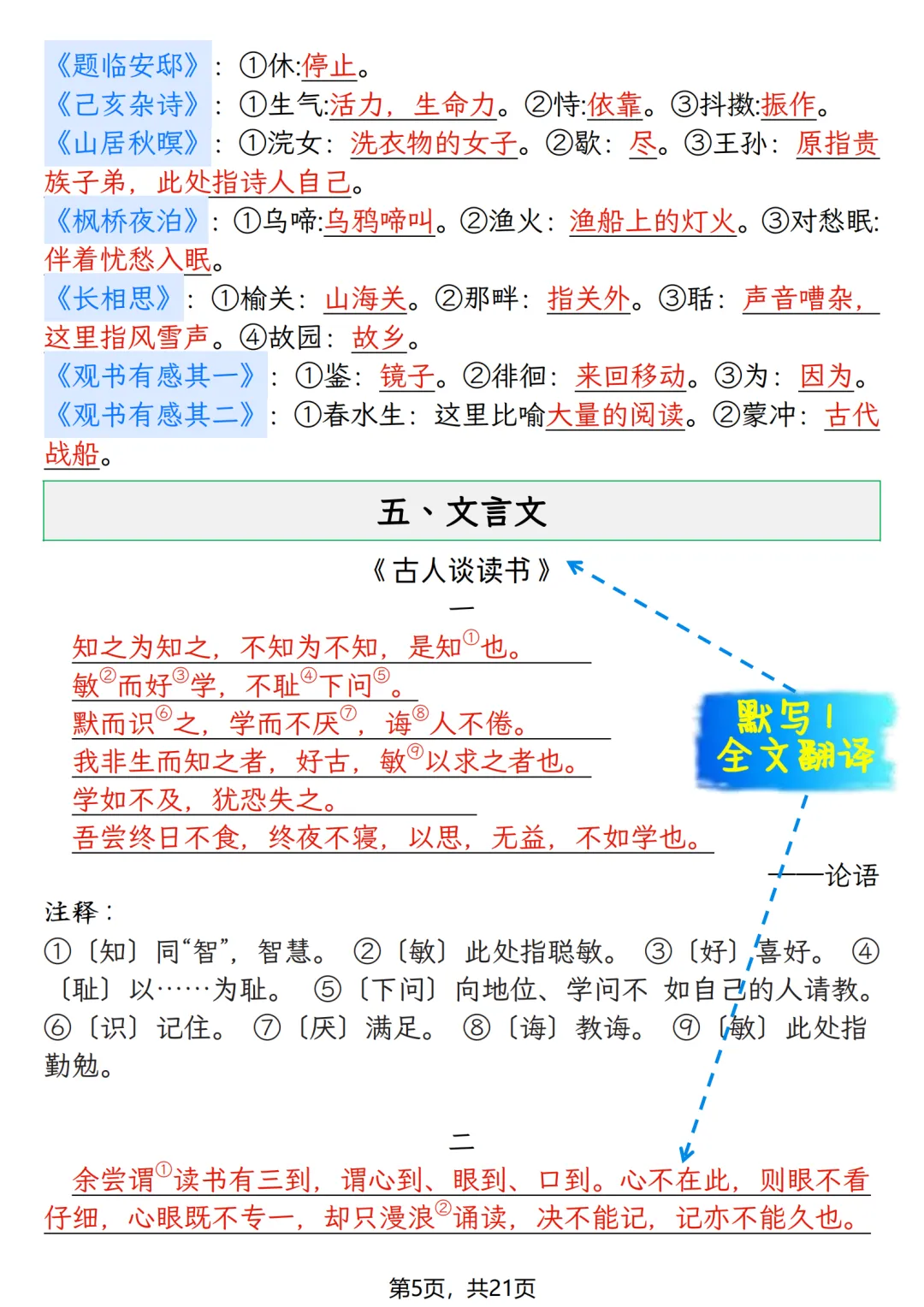 五年级上册语文期末押题复习资料(知识点+训练),打印给孩子高效备考!