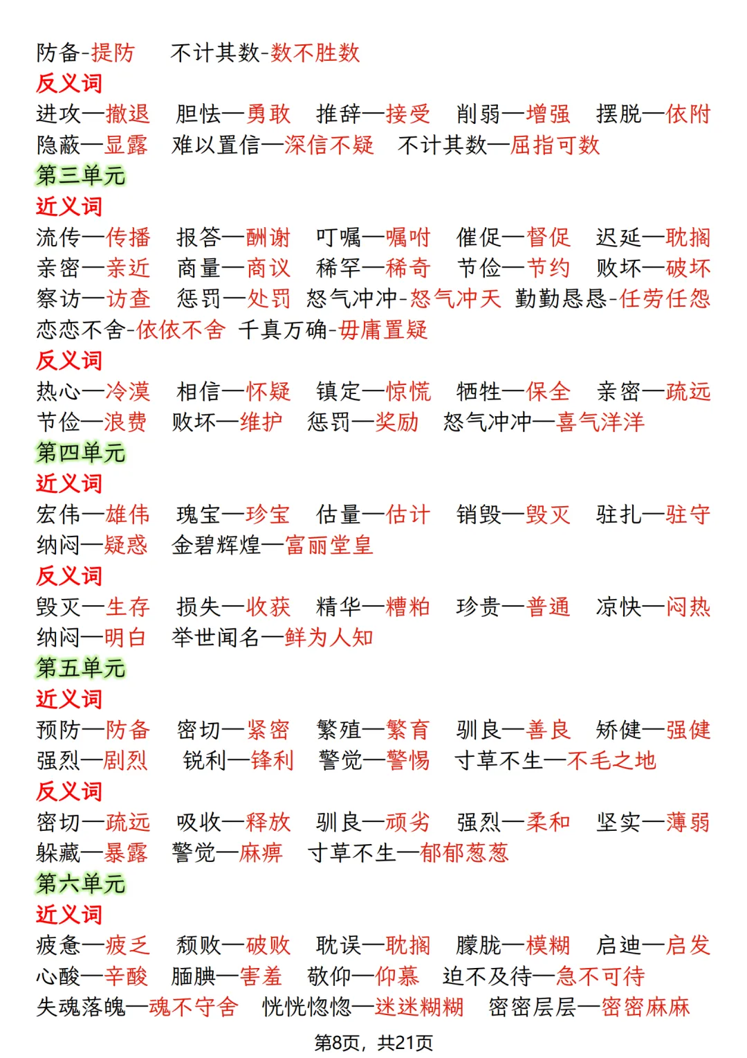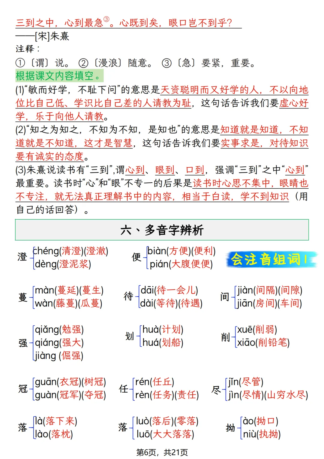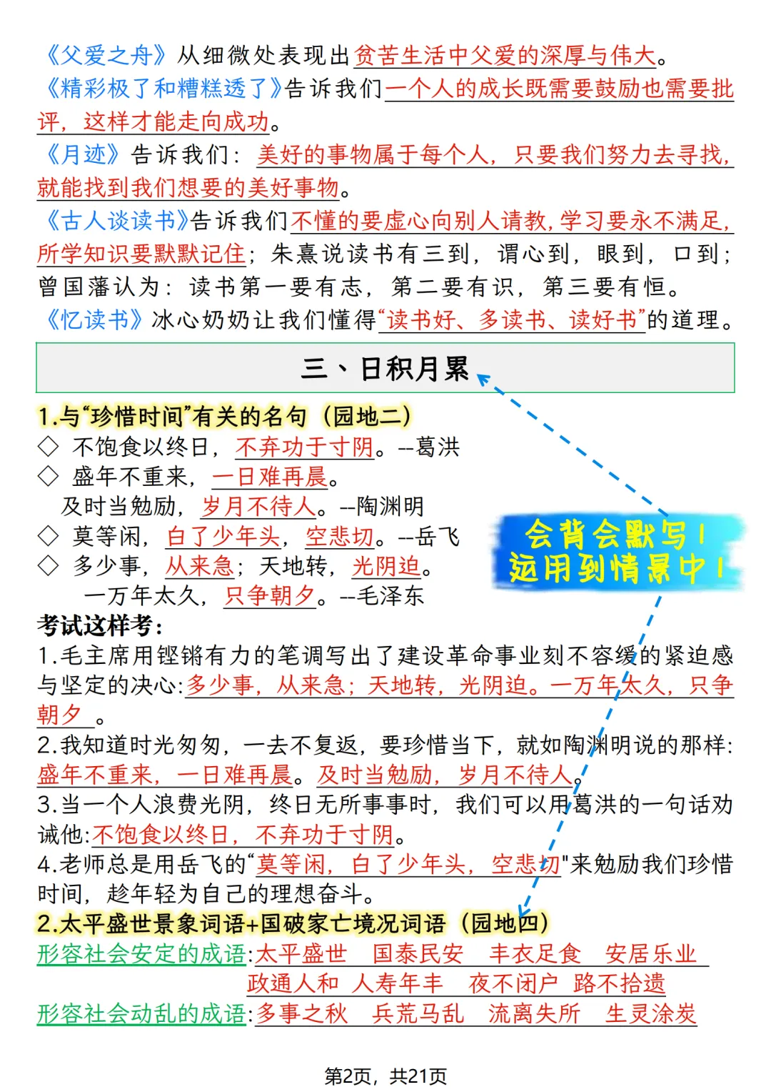 五年级上册语文期末押题复习资料(知识点+训练),打印给孩子高效备考!