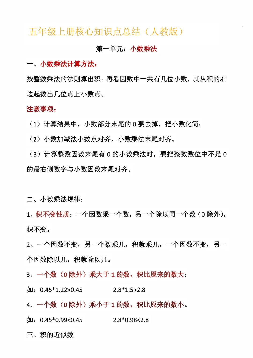 >25年秋季小学5年级期末数学复习资料