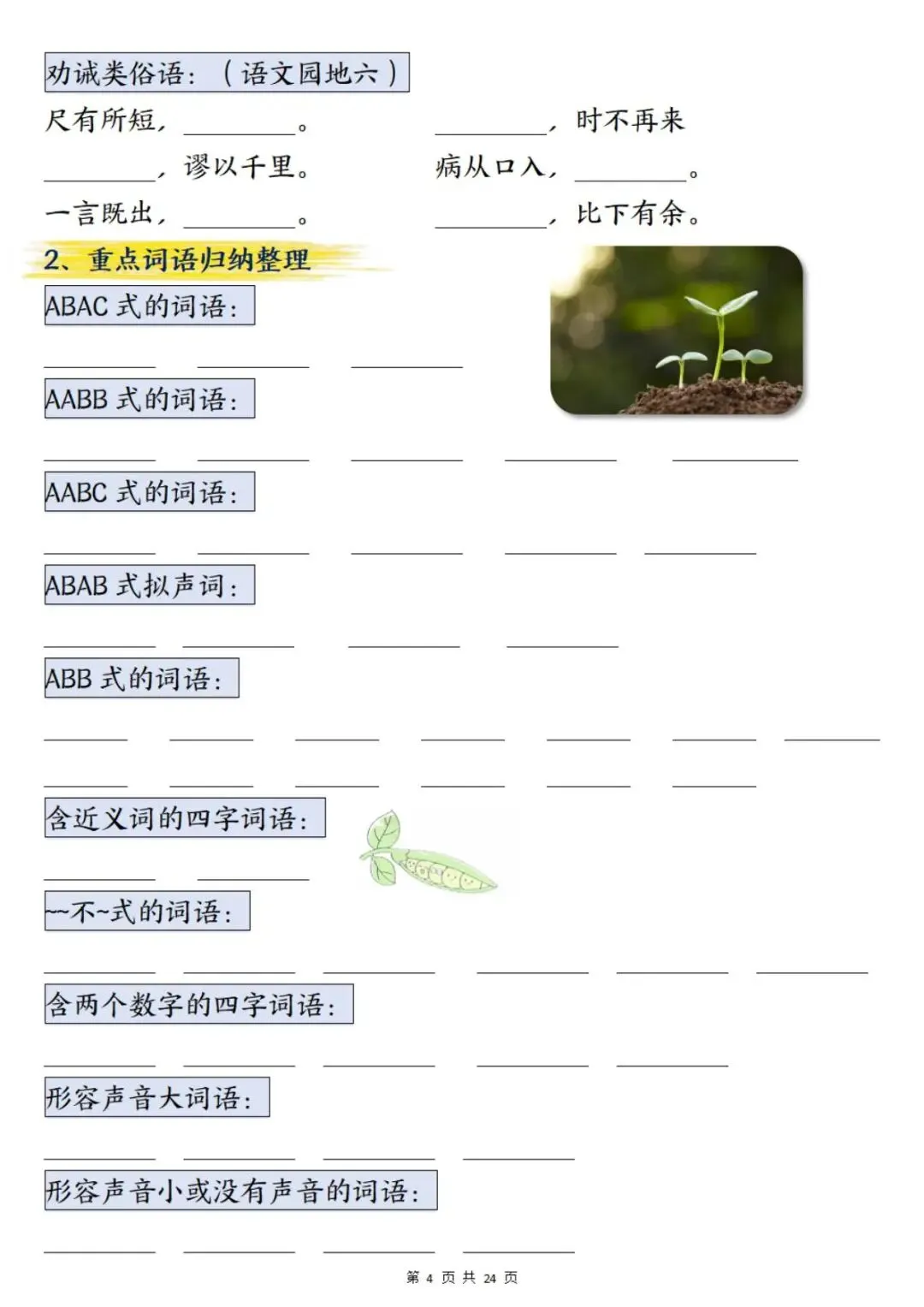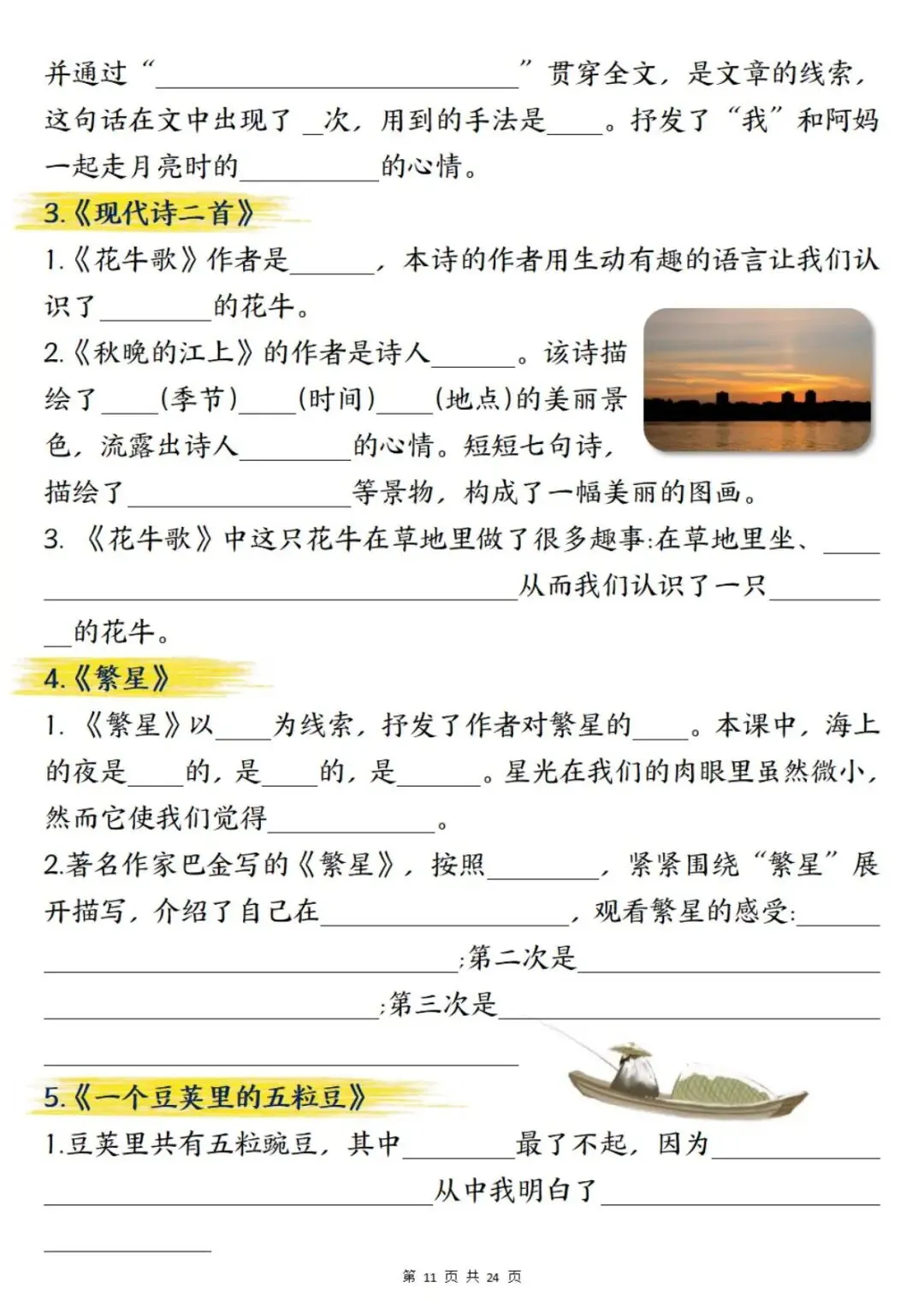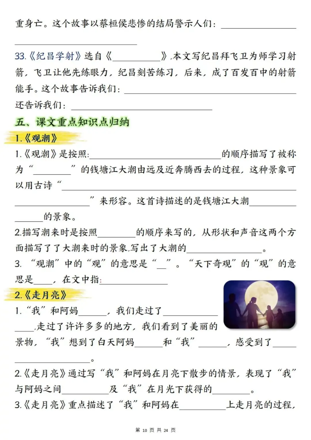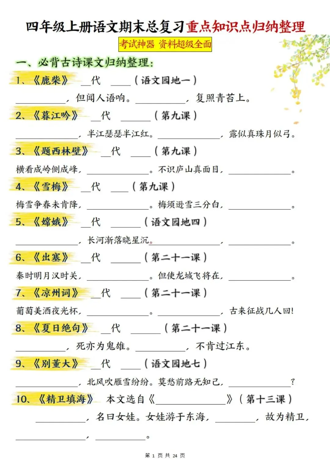 【小学资料】25秋四年级上册语文《期末总复习重点知识点归纳整理》(含答案48页)电子版可打印