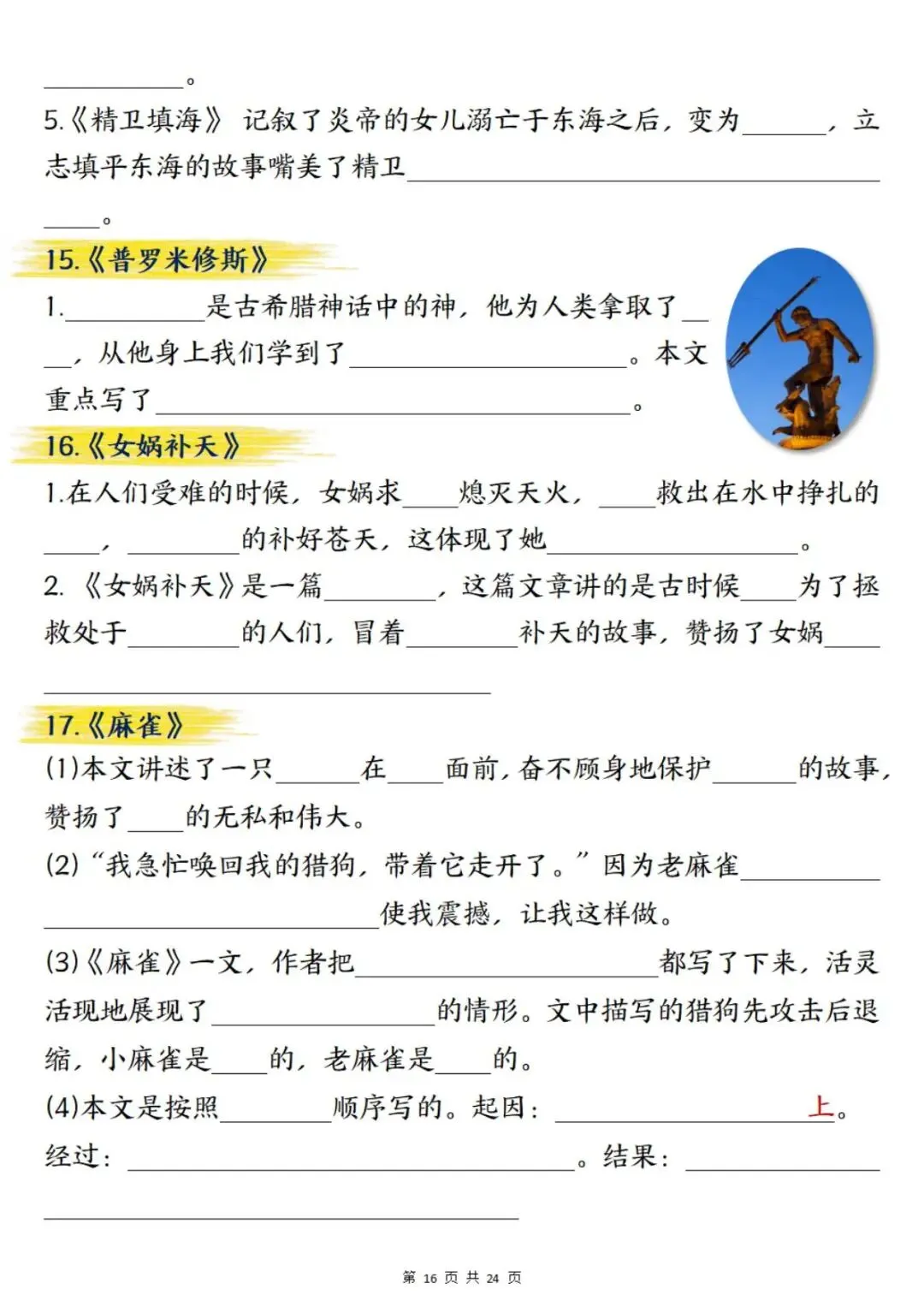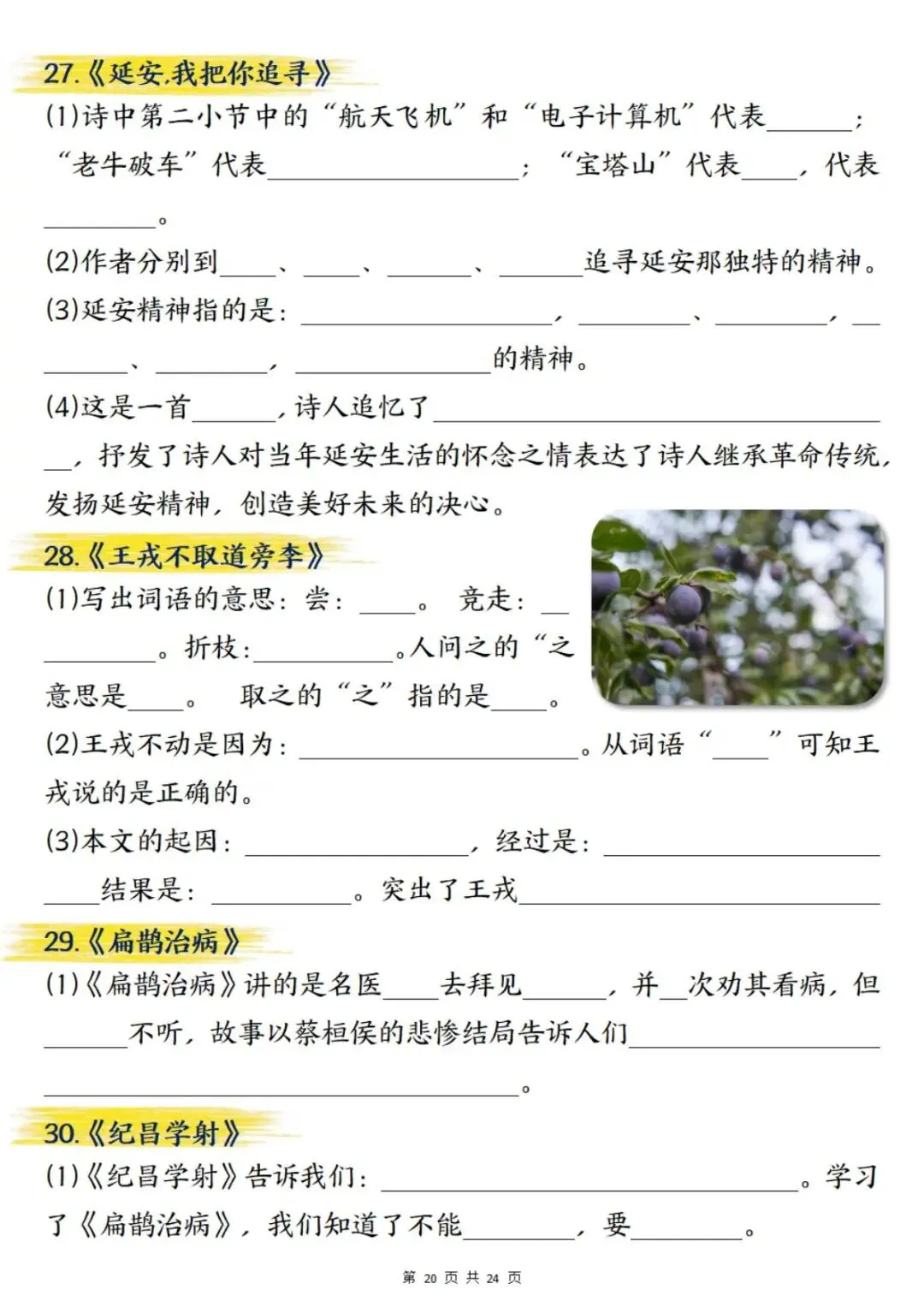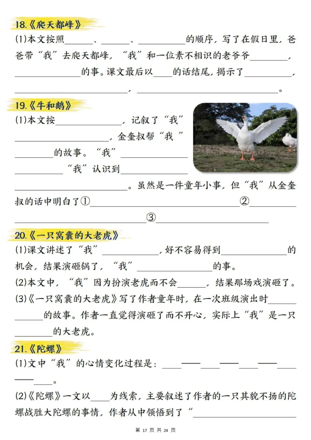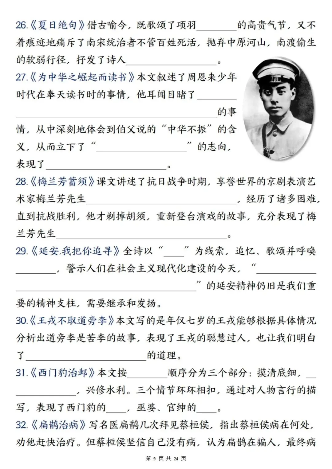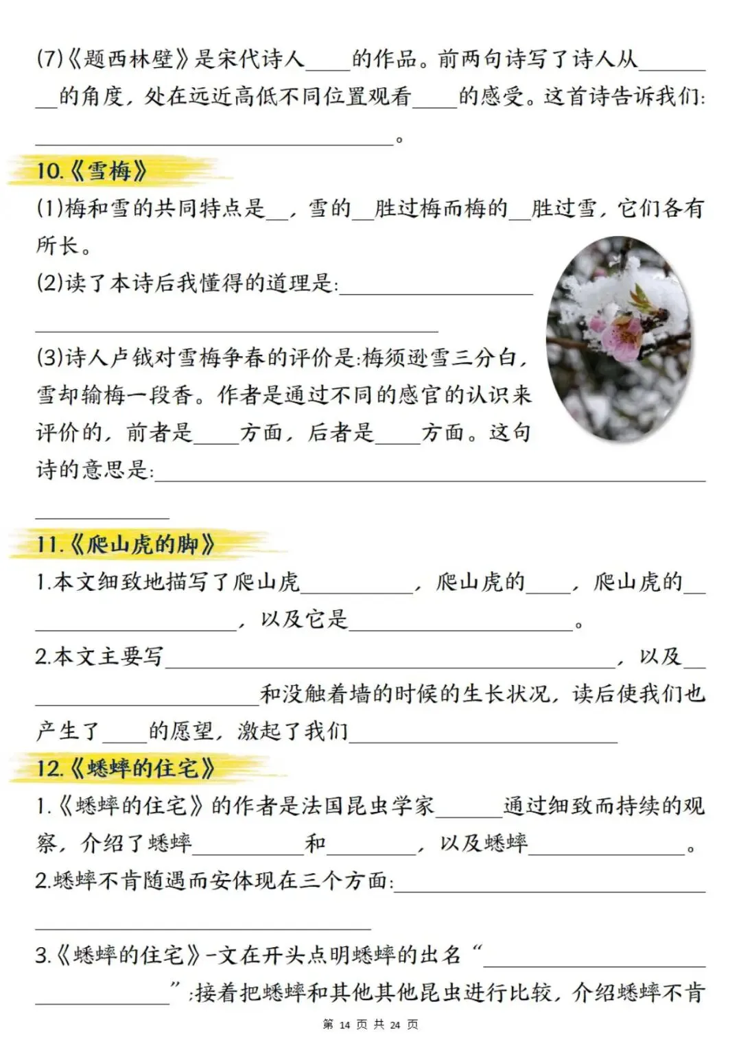 【小学资料】25秋四年级上册语文《期末总复习重点知识点归纳整理》(含答案48页)电子版可打印