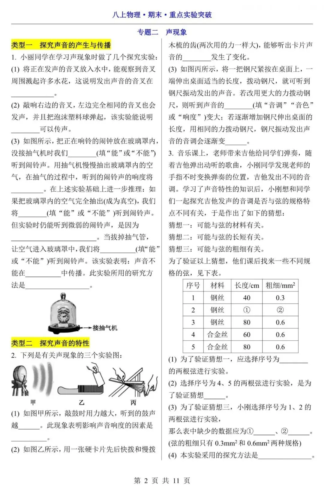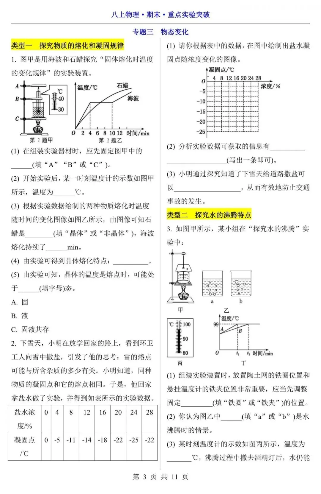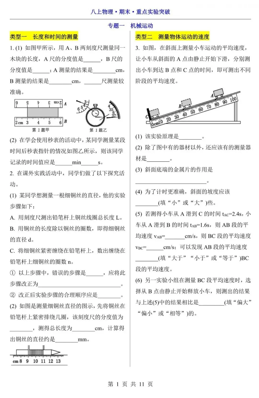 【八上物理】25新八年级上册物理期末复习重点实验考题,含答案(电子版可下载打印)