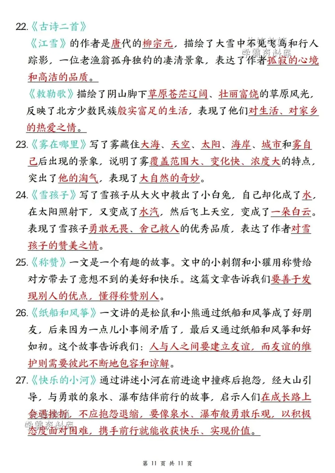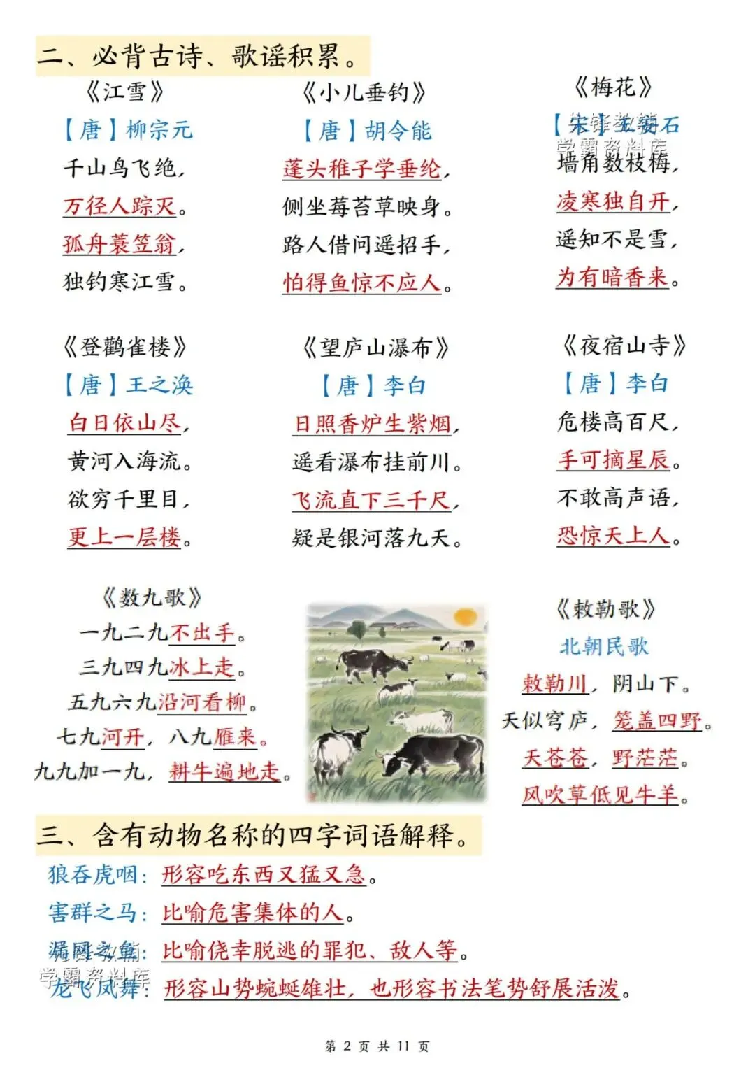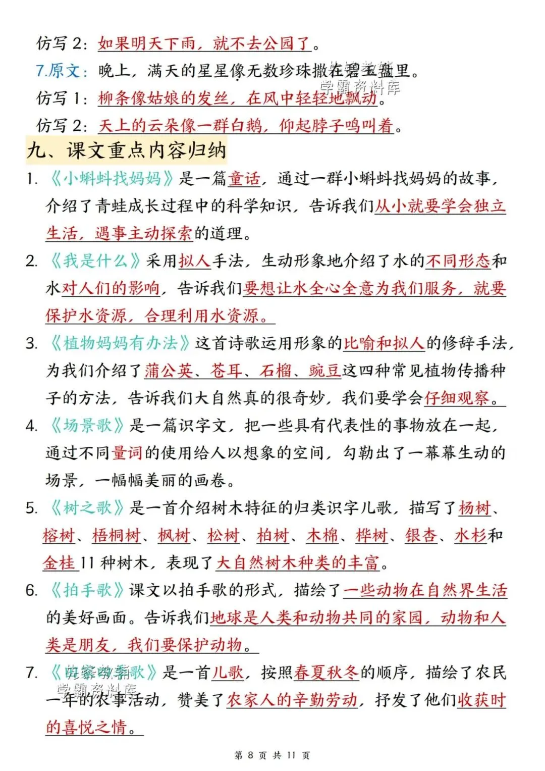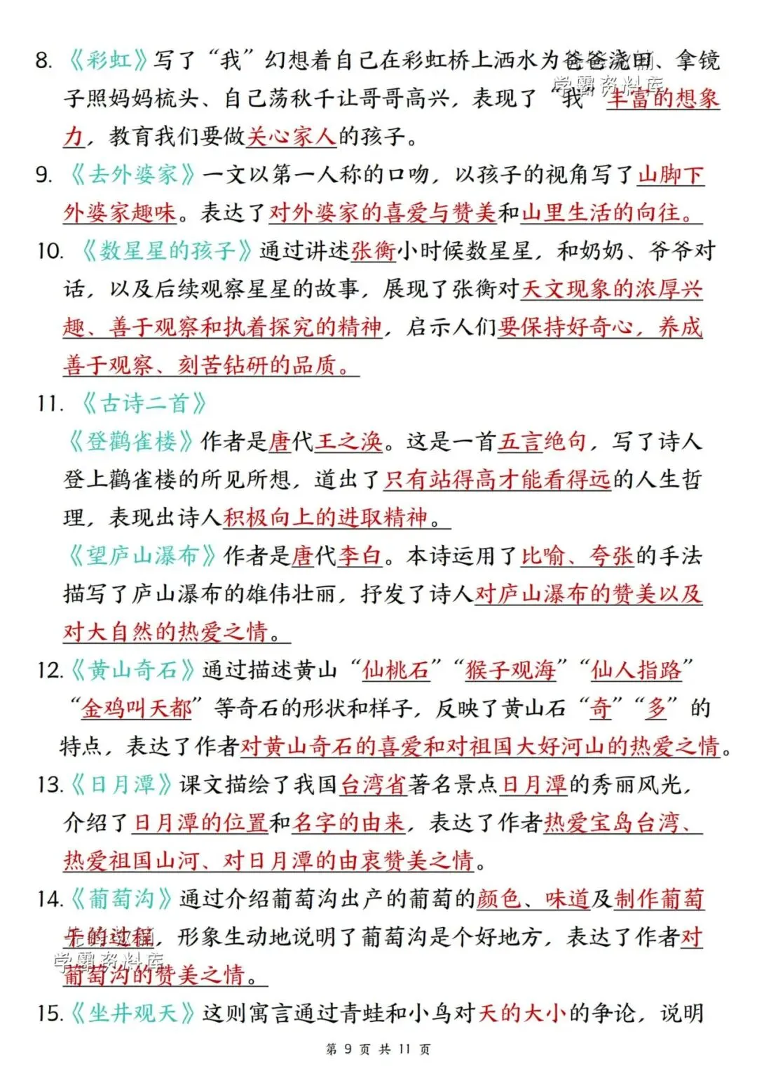 新版二年级上册语文期末复习重点汇总,共11页,(完整电子版可打印),