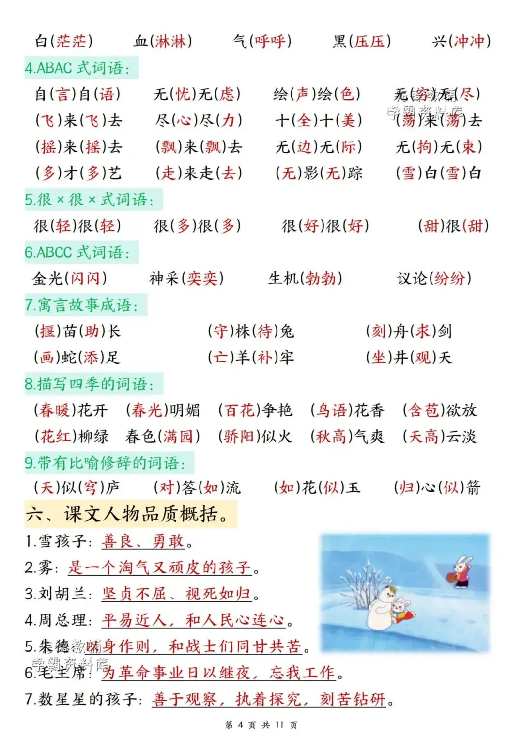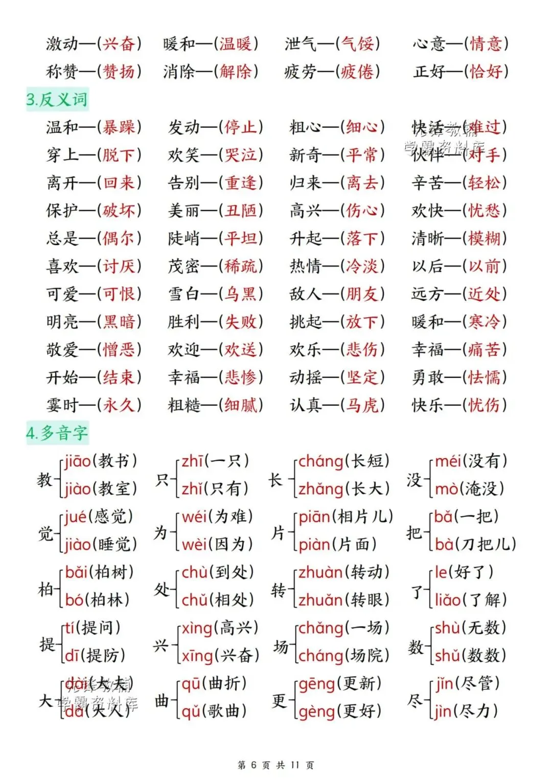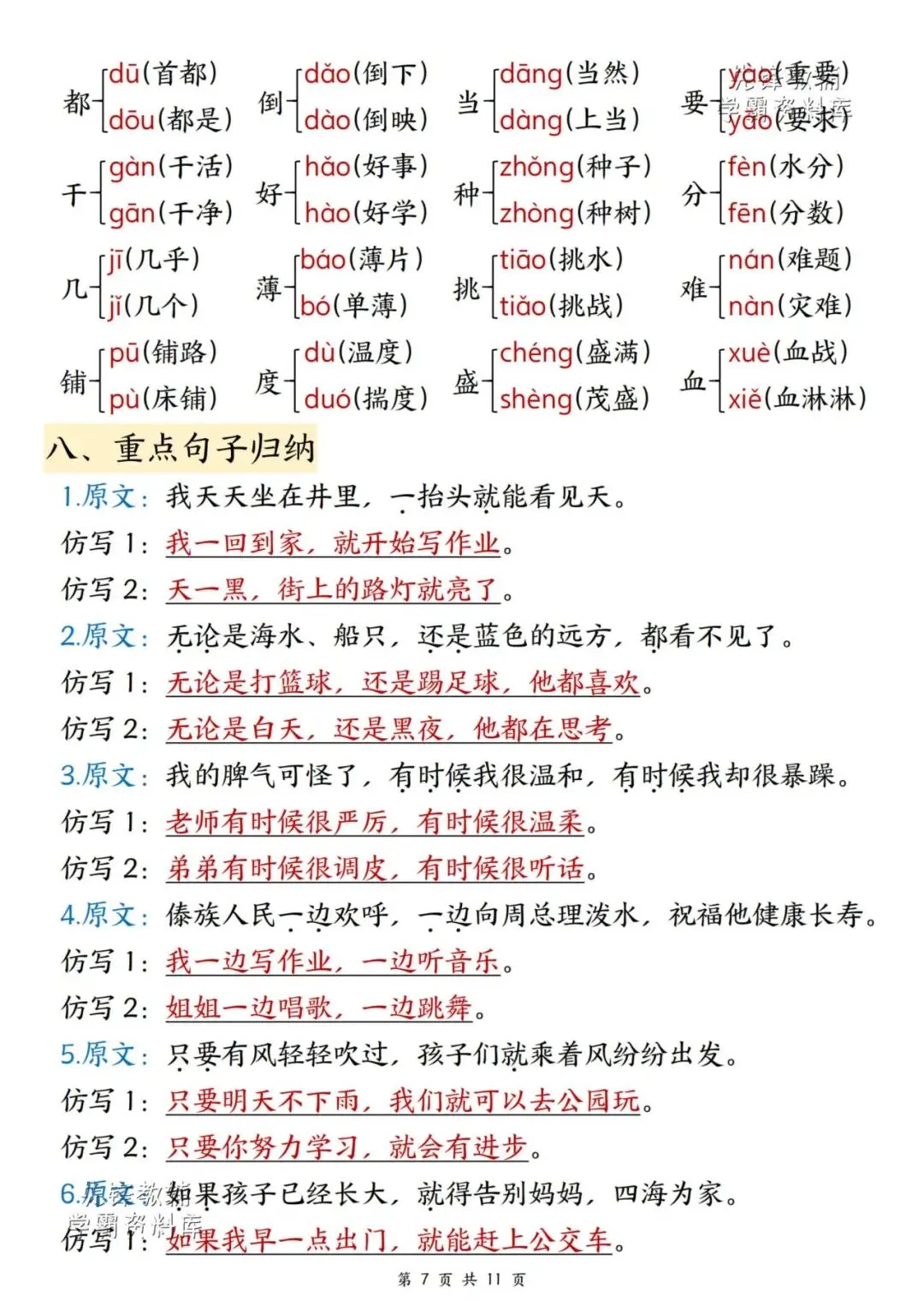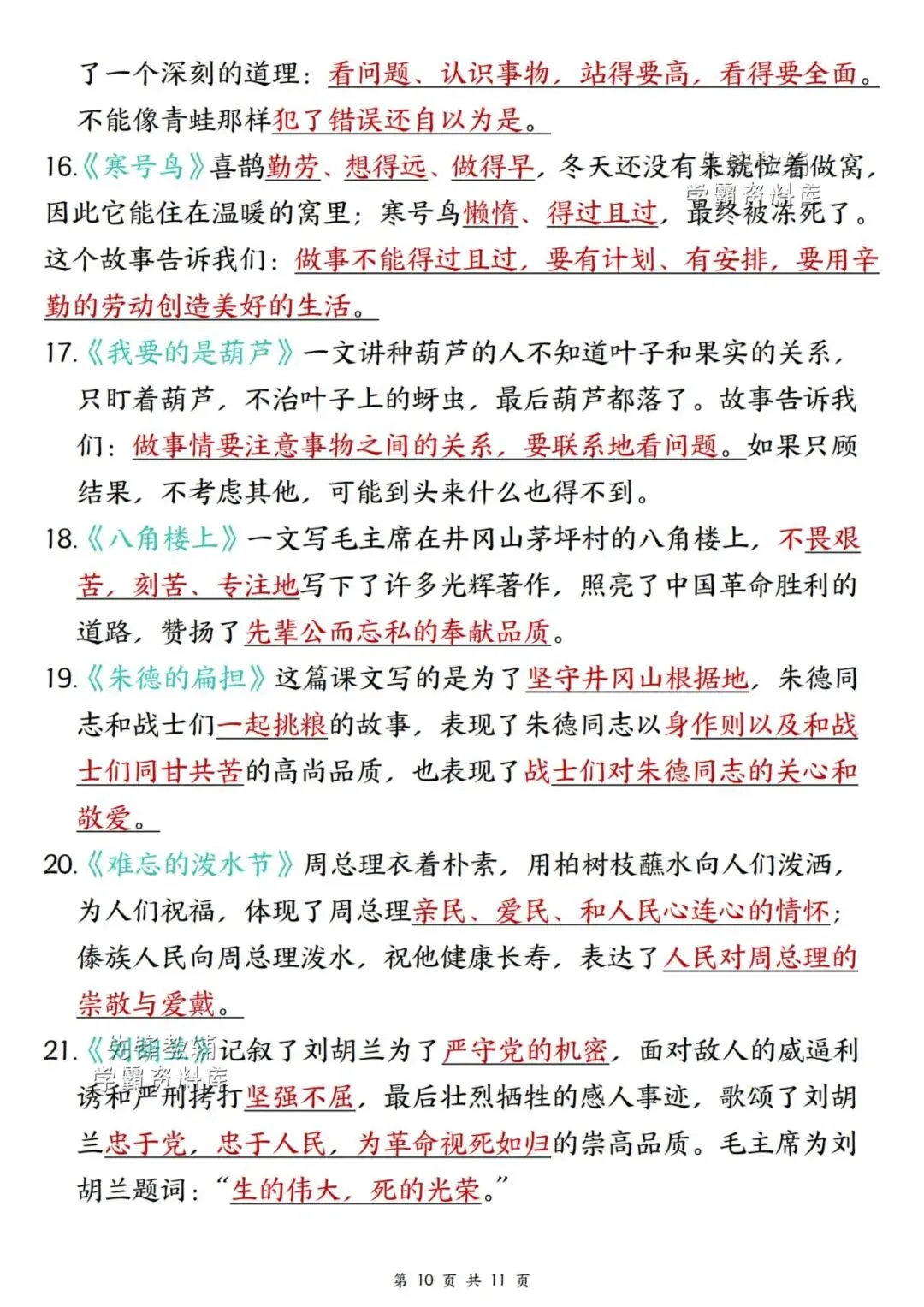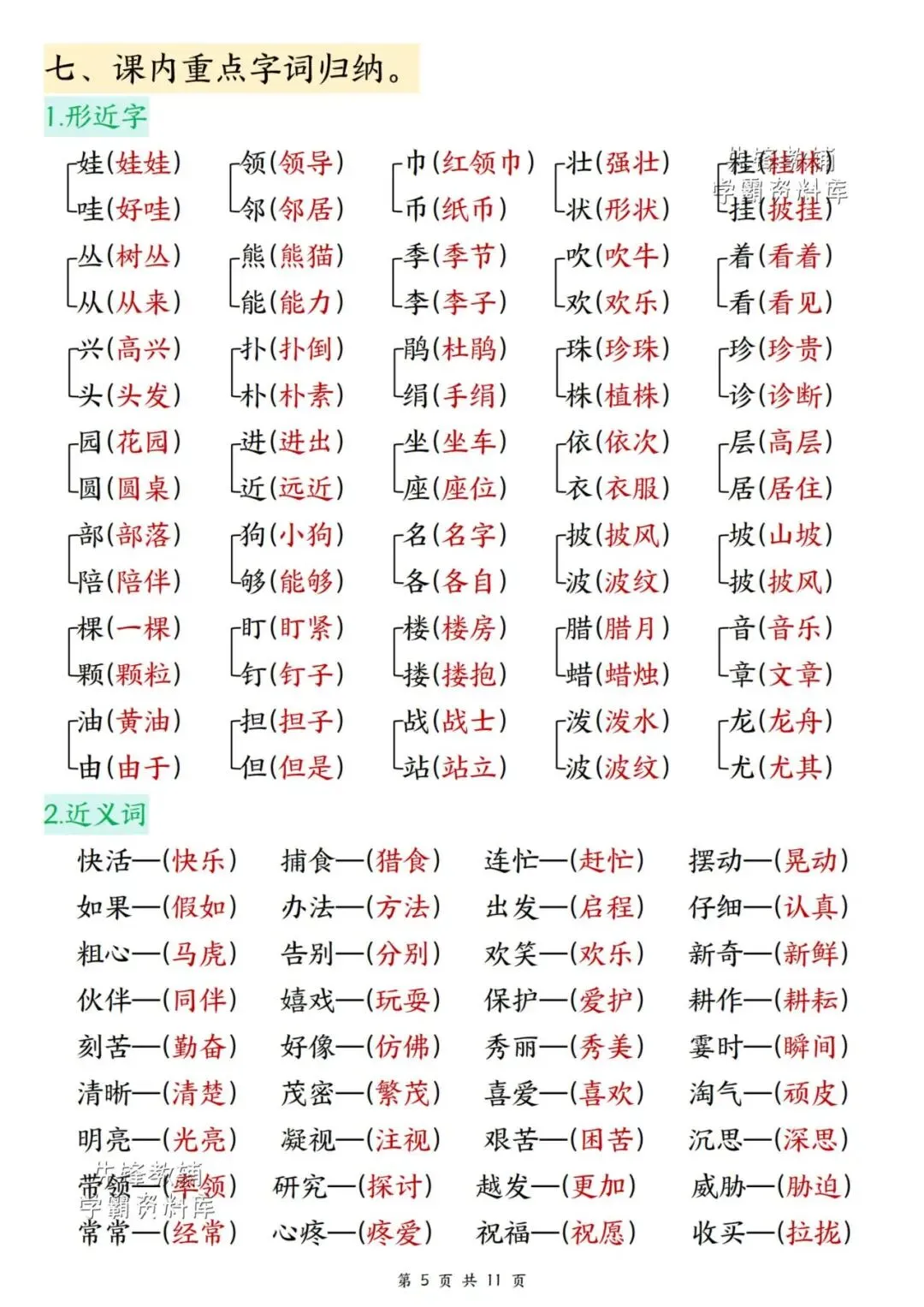 新版二年级上册语文期末复习重点汇总,共11页,(完整电子版可打印),