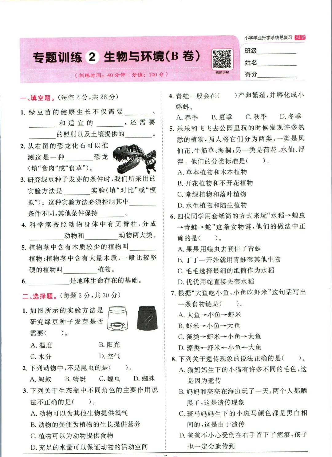 今天给大家带来的是科学《阳光同学学习资料》,免费分享给大家!