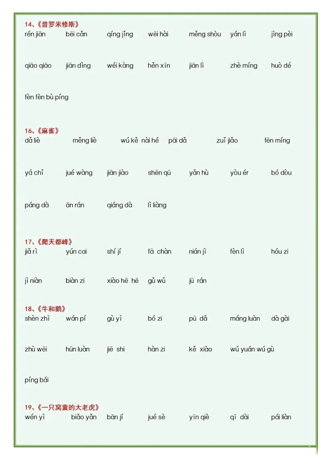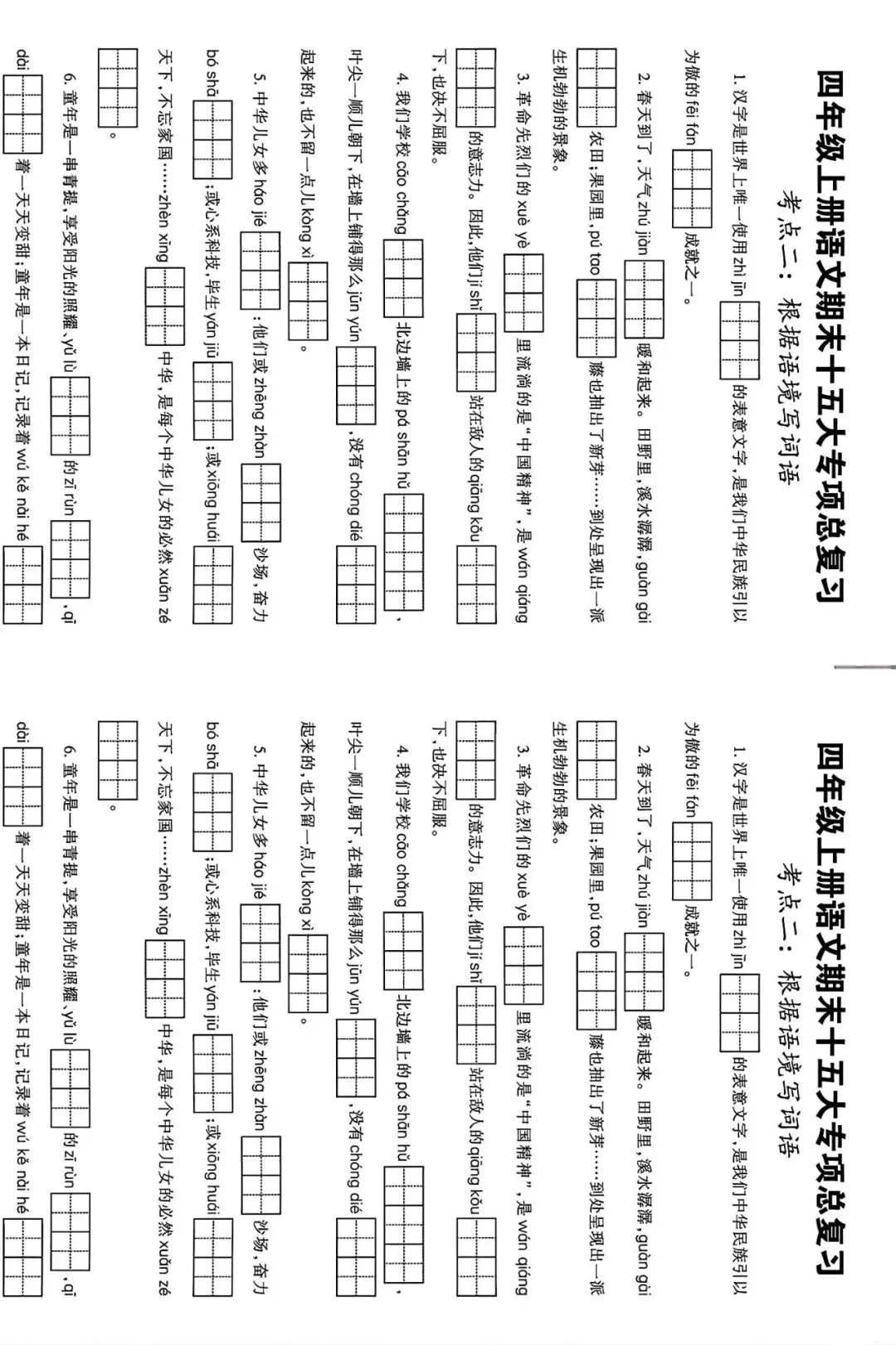 今天分享的是四年级语文上册:期末总复习资料,要考的都在这儿了,让基础不丢分提供电子版,如果觉得不错的话,建议及时打印出来让孩子读一读练一练,查漏补缺,巩固提升,加强基础训练。也可以分享到班级群,让家长们打印出来,帮助孩子学习哦!