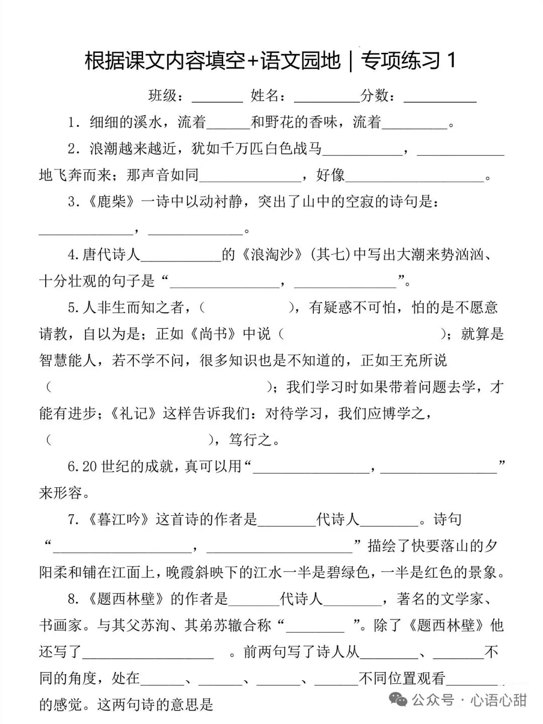 【复习资料】八年级语文上册古诗文重点语句理解性默写