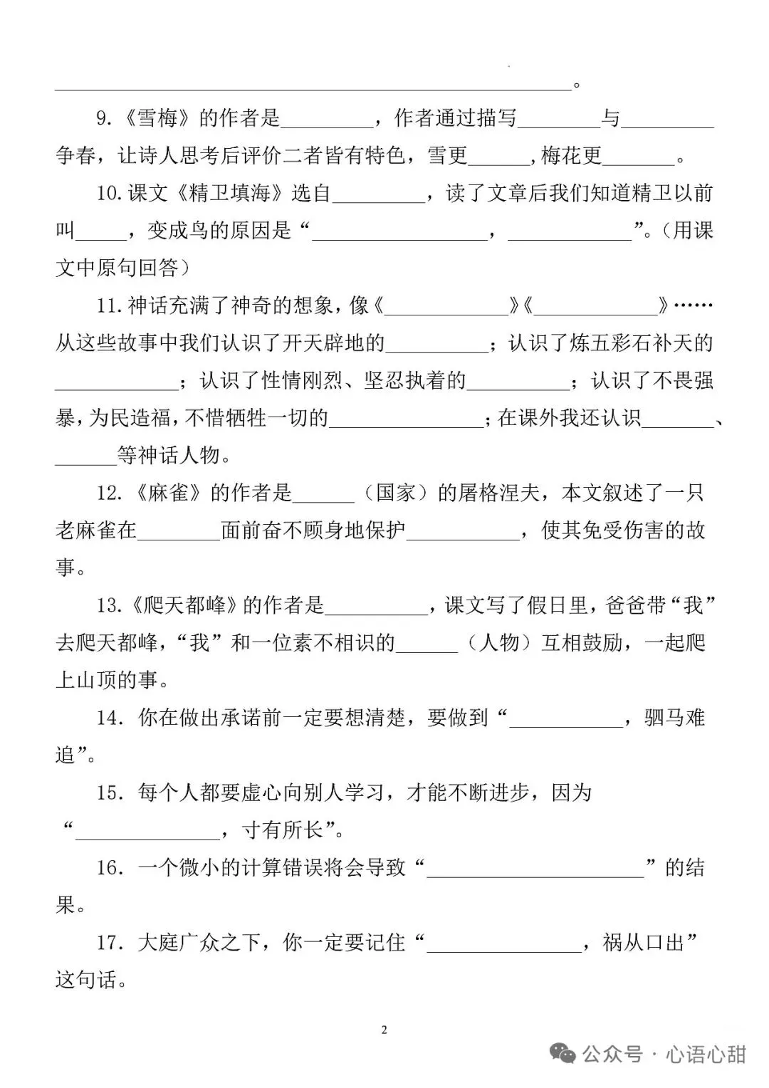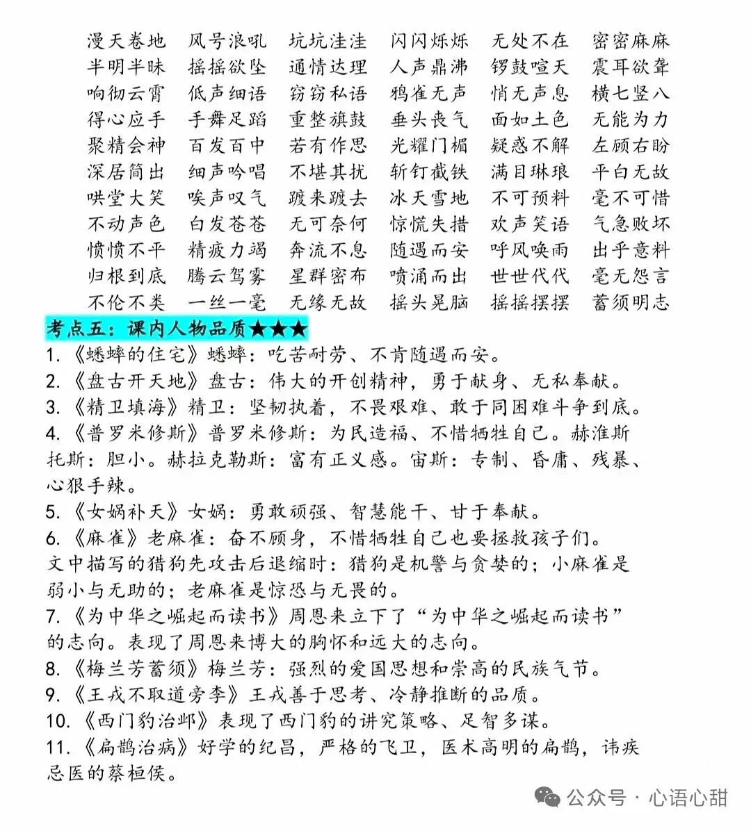 三年级上册语文期末复习资料分享