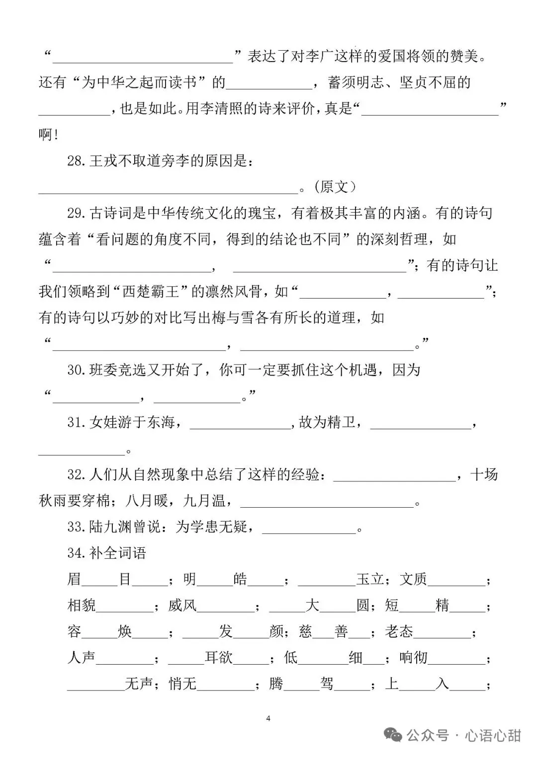 新版四年级下册语文期末复习重点仿写句子汇总(完整电子版可打印)