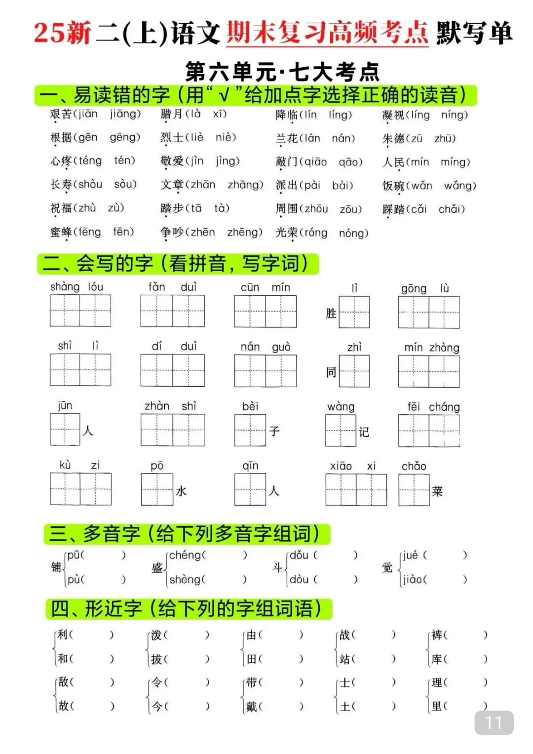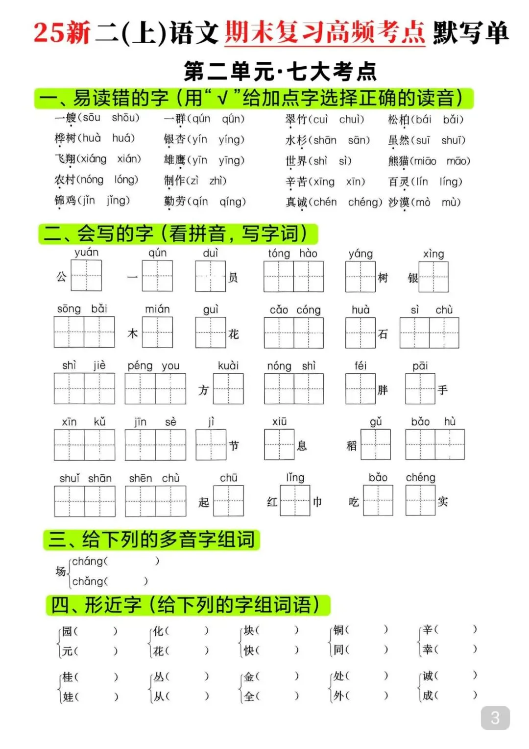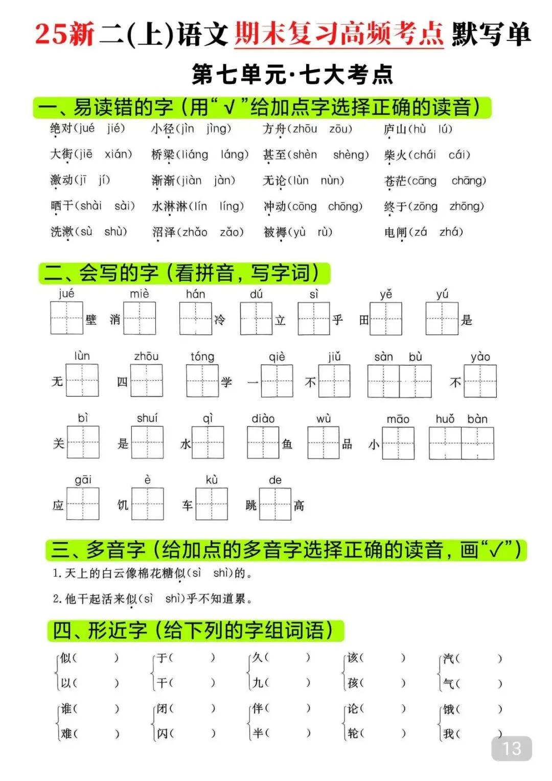 今天给大家整理了25秋|二年级上册语文期末高频考点(16页)附链接!免费分享给大家,如果觉得不错的话,可以分享给朋友或班级群,受益更多人,帮助孩子学习!