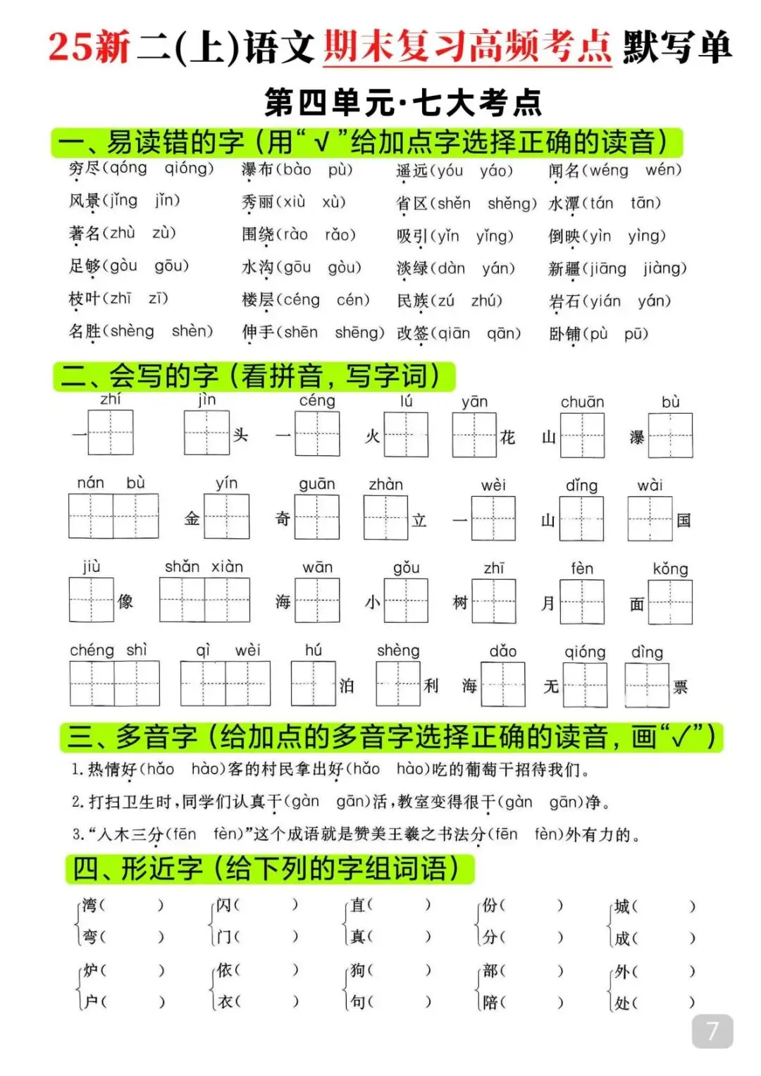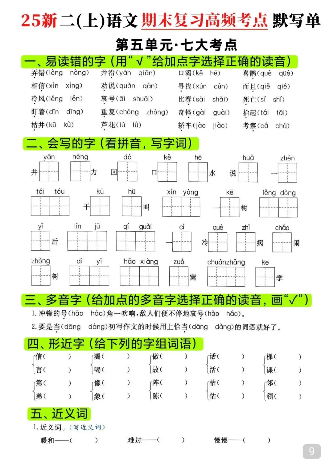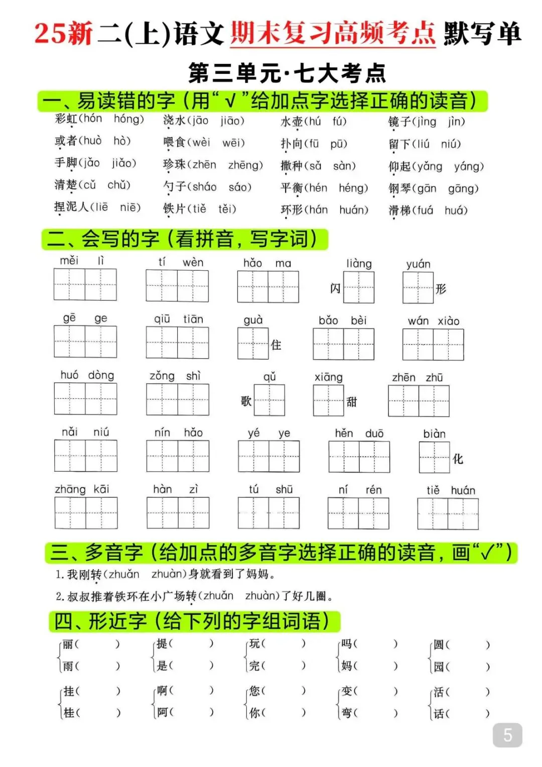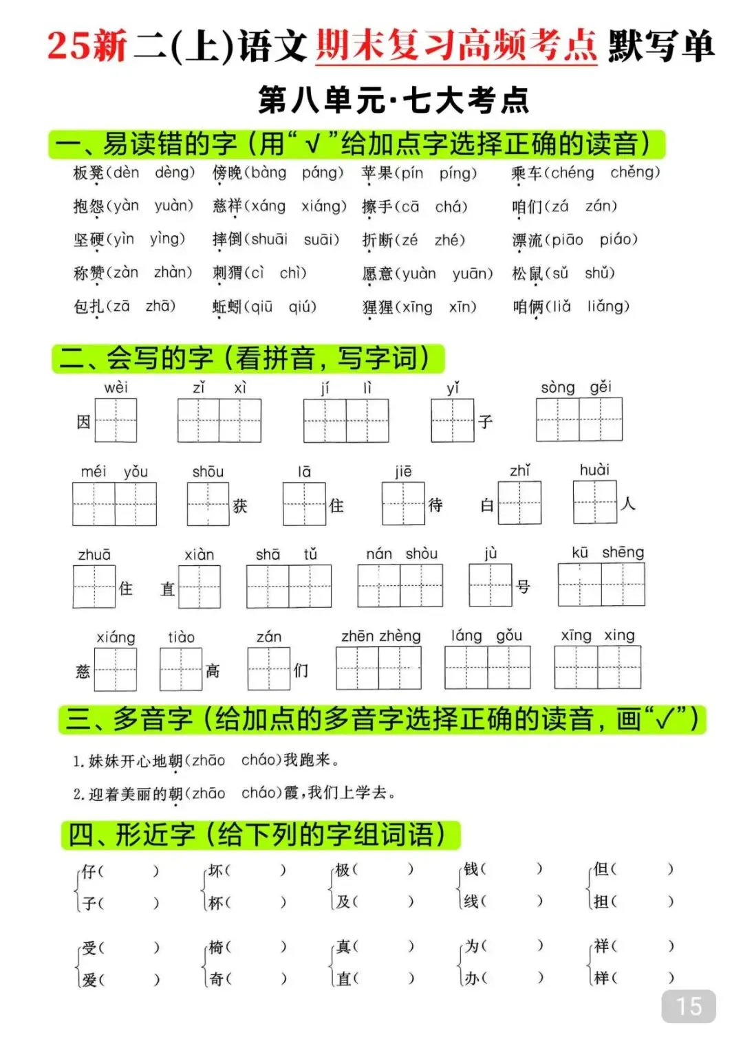 今天给大家整理了25秋|二年级上册语文期末高频考点(16页)附链接!免费分享给大家,如果觉得不错的话,可以分享给朋友或班级群,受益更多人,帮助孩子学习!