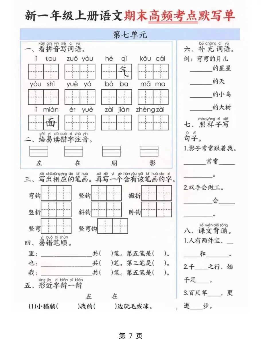 🔥「1-6年级语文(上册) 第七单元测试卷」链接:https://pan.quark.cn/s/f3c484d25916