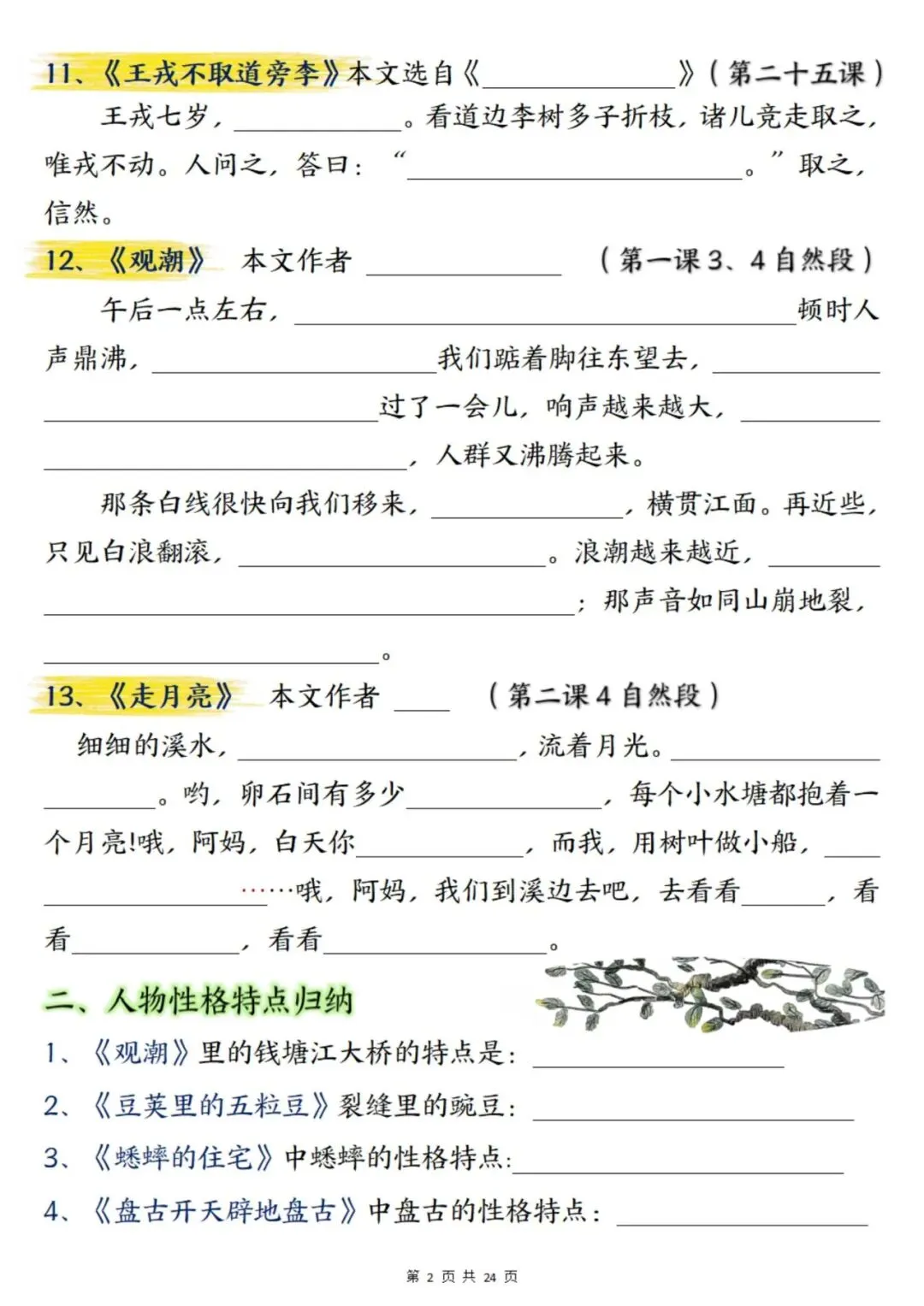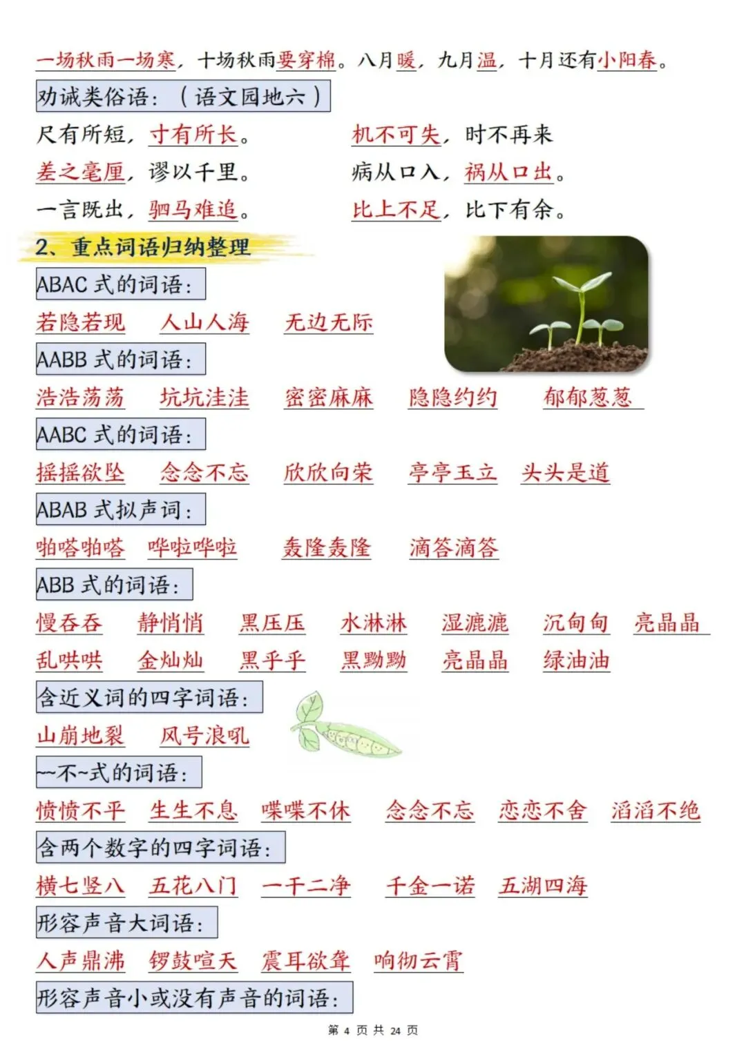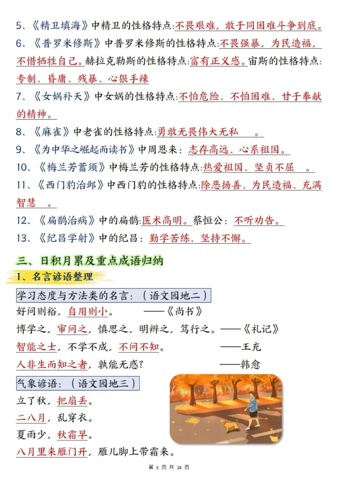 2025年秋新版四年级上册语文期末总复习重点知识点归纳整理(含答案48页),PDF电子版可下载