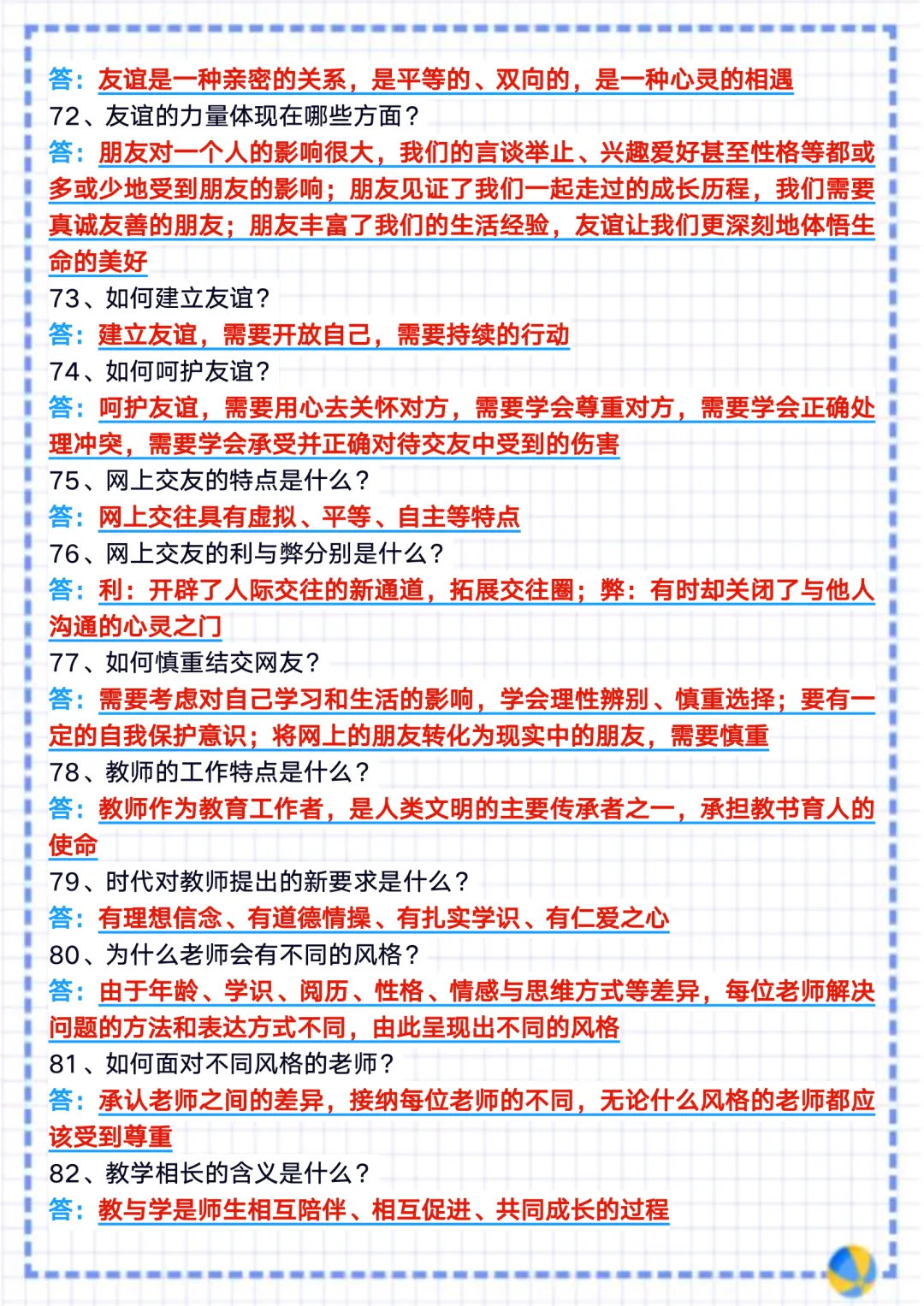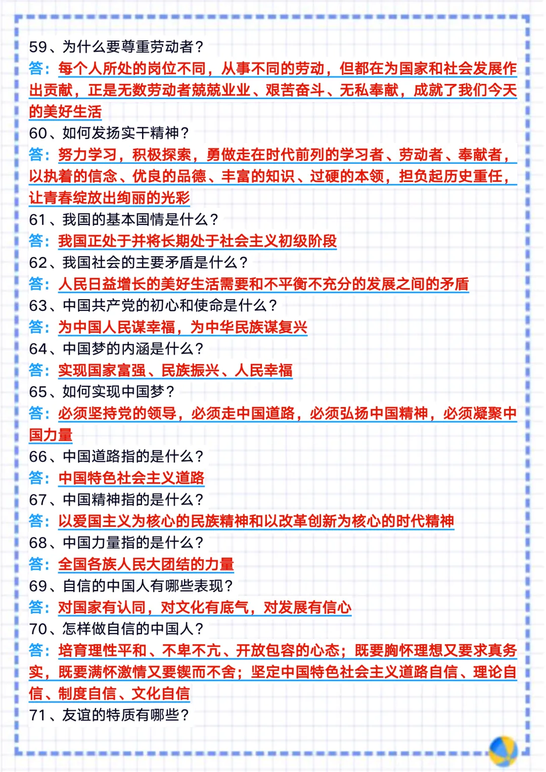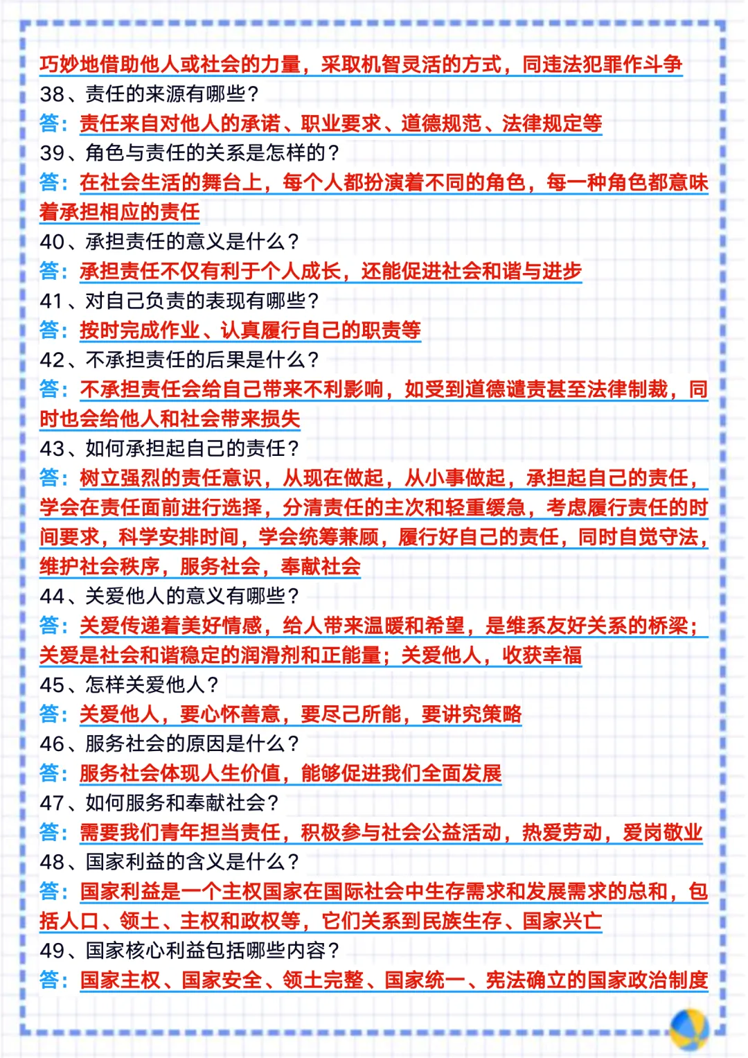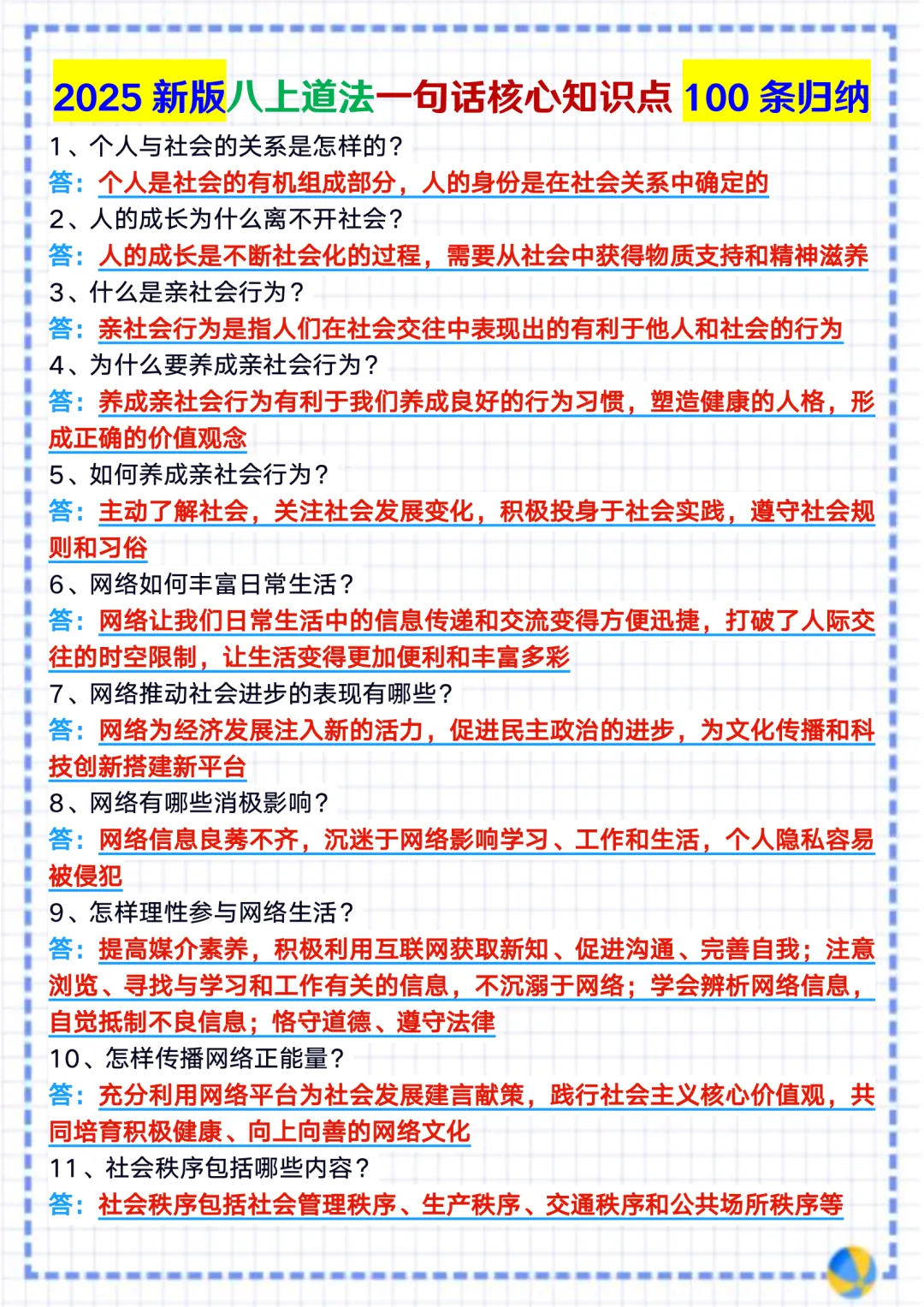 今天整理了2025 新教材八上道法期末复习重点背记一句话核心知识点梳理总结,电子版可打印!