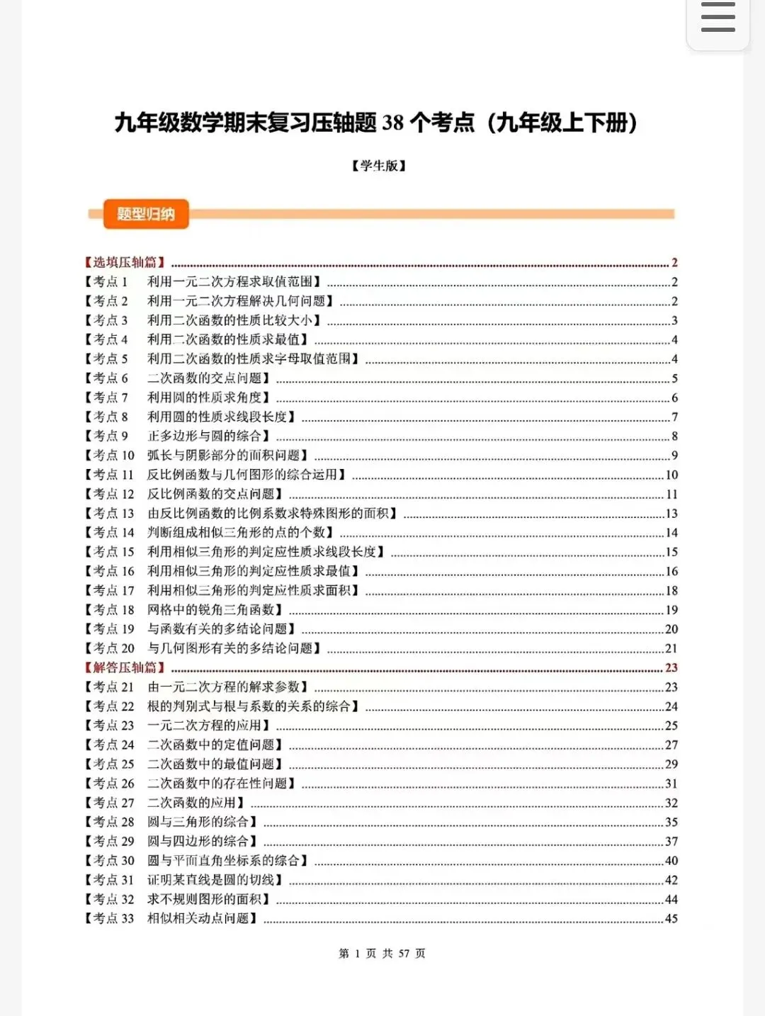 今天燕天王老师大家带来一份九年级数学期末压轴题复习资料。
