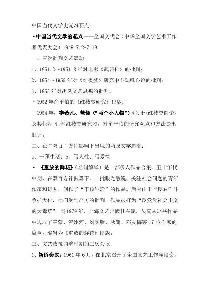 复习资料:中国当代文学 笔记+知识点+答案 +试卷 PDF