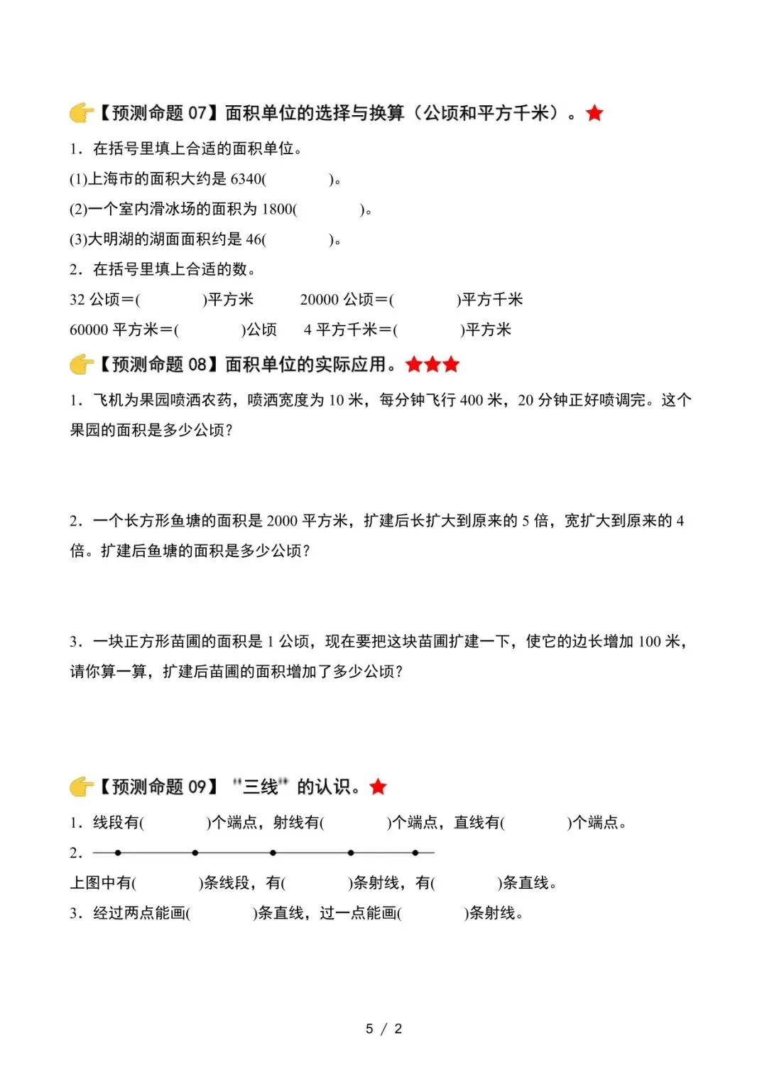 人教版,涵盖大数的认识、面积单位、角的认识、三角形、统计图表等,适合期末复习。
