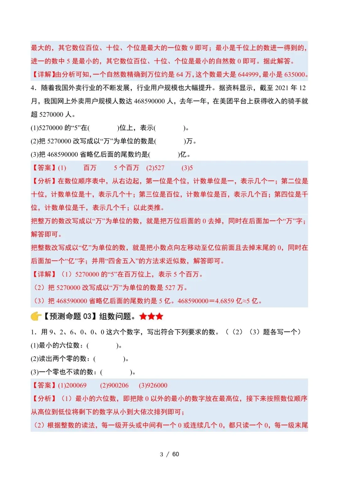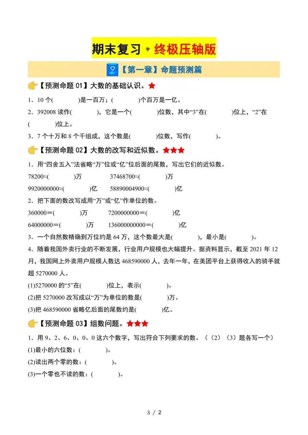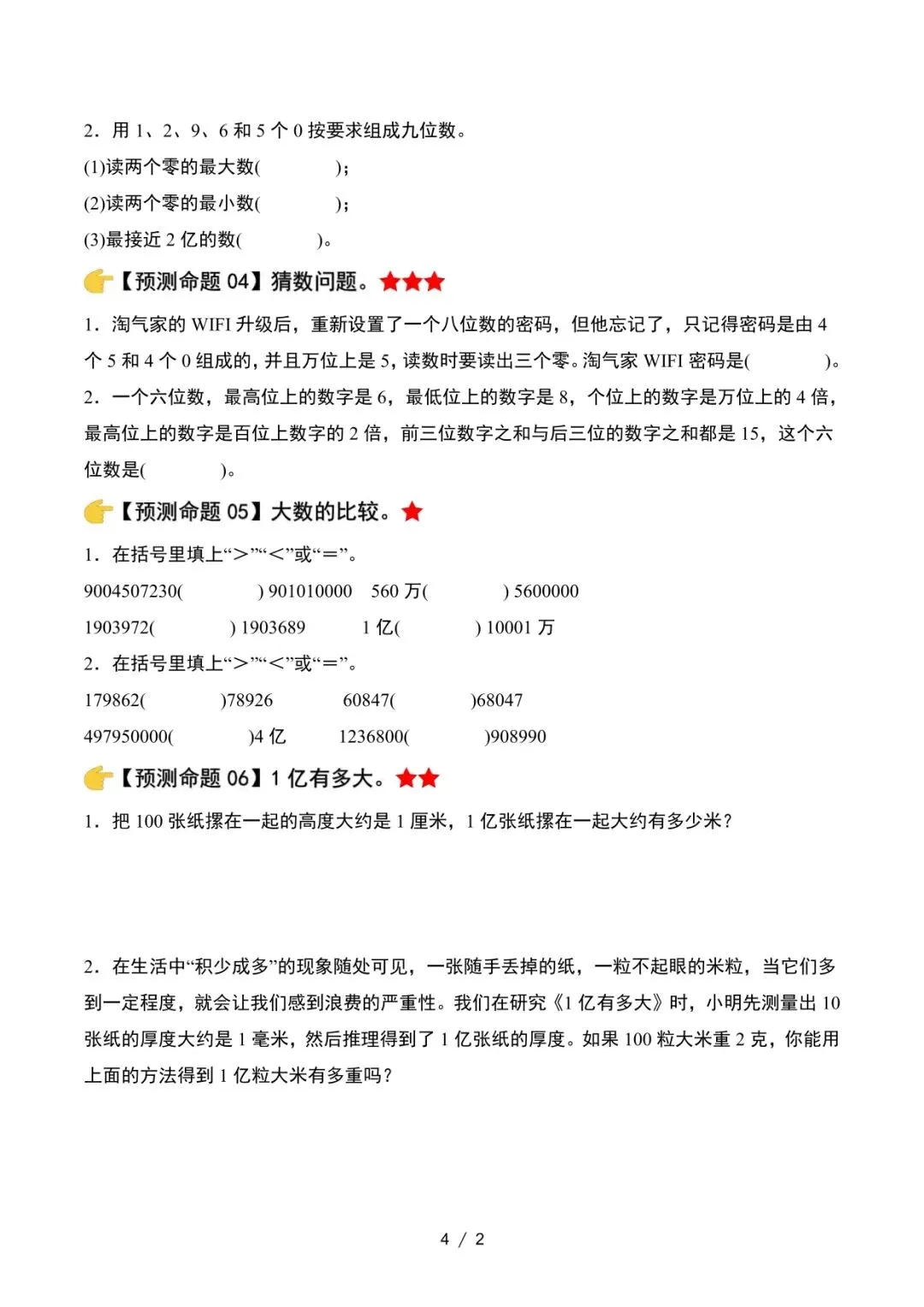 四年级上册数学期末复习压轴练习资料