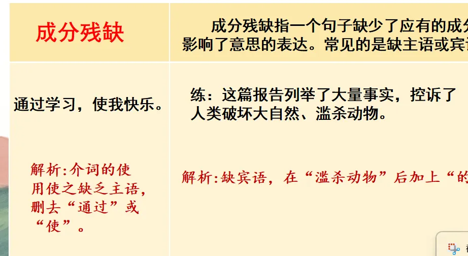 >初中各册复习课件、资料大全之 ——病句