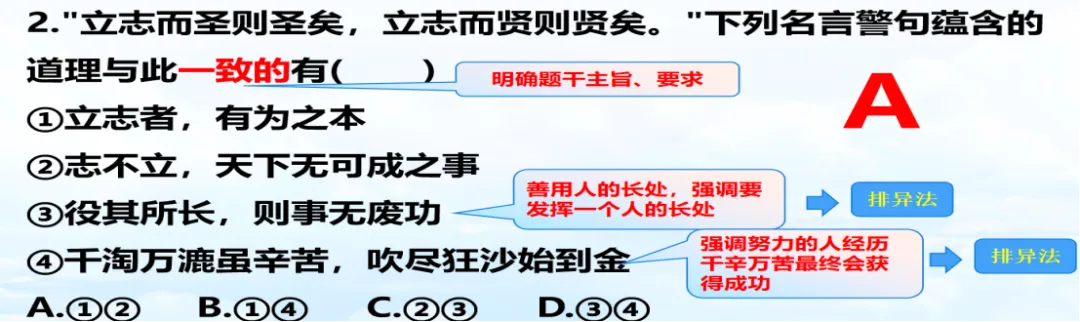 1.人民日报如此描绘初中阶段:“初中生活,我来了!我将以最饱满的热情拥抱每一天,用汗水浇灌希望的种子,在这片沃土上绽放出最绚烂的青春之花。”与上述语意相符的诗句是()