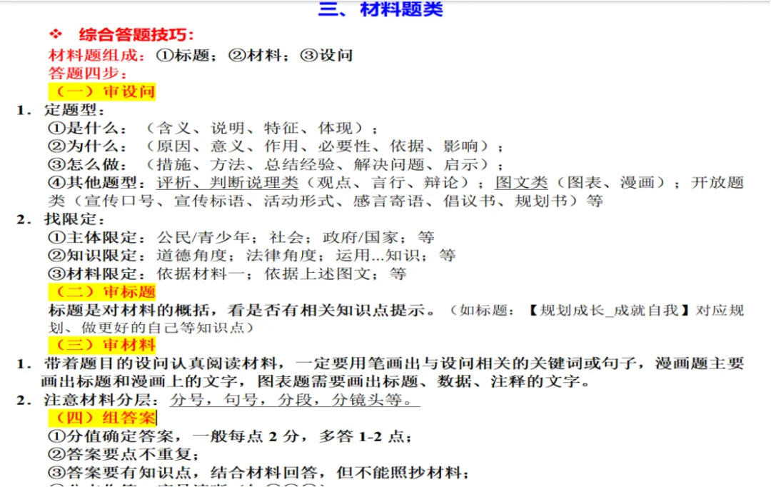 三、材料题类(综合答题技巧+经典例题综合训练25题)