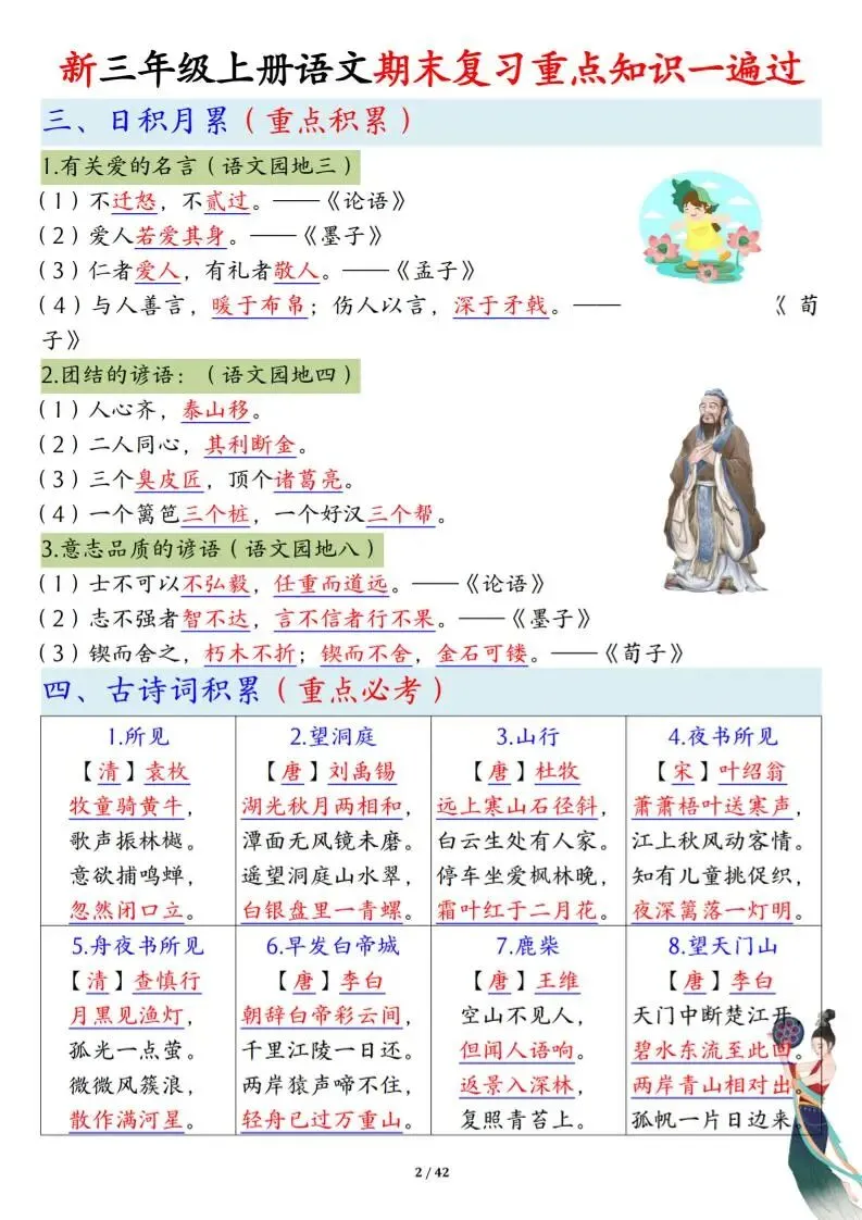 今天为大家分享的是新三上语文期末复习重点知识一遍过(十三考点汇总)42页,接下来为大家展示部分内容,这是馨馨妈妈精心整理搜集,欢迎大家下载! 有喜欢的可以查看文末领取方式哟!