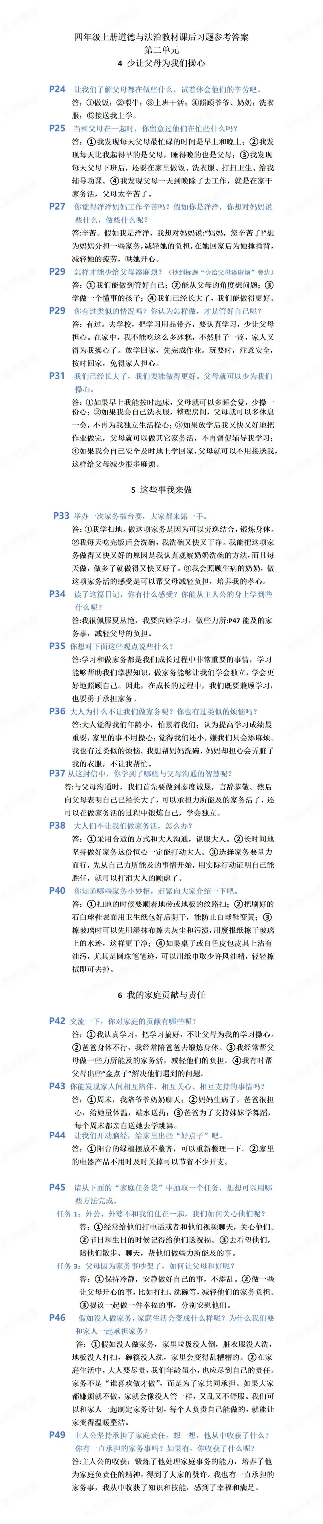 复习资料|四年级上册道德与法治教材课后习题参考答案(第二单元)