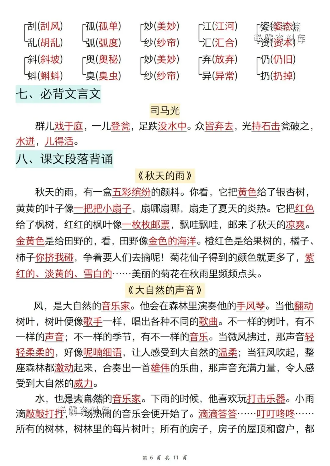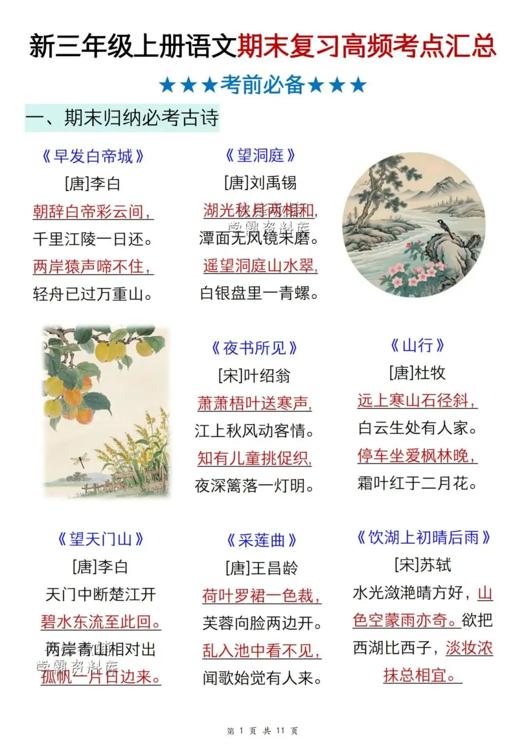 大家好,我是小九妈妈,感谢大家观看我的文章,今天分享的是《2025年秋新3年级上册语文(期末复习重点必备汇总)》电子版可打印。