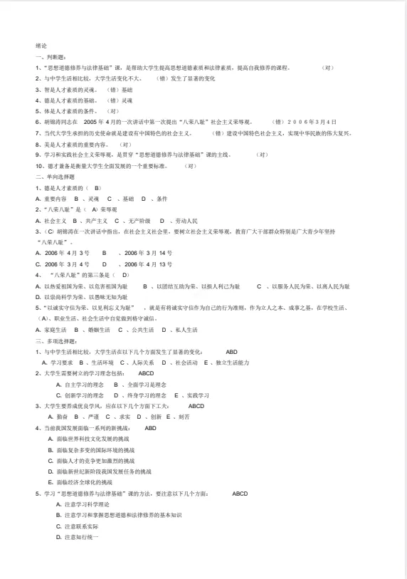 23版《思修》期末重点复习资料+必考知识点汇总+习题库(含答案)