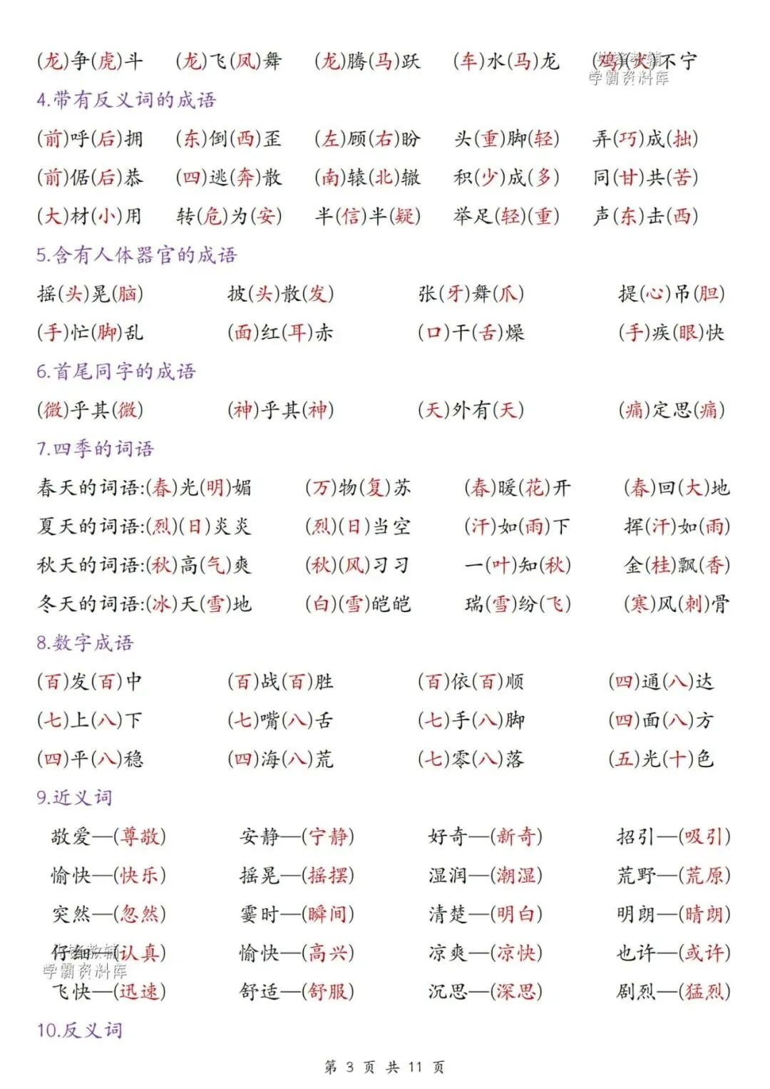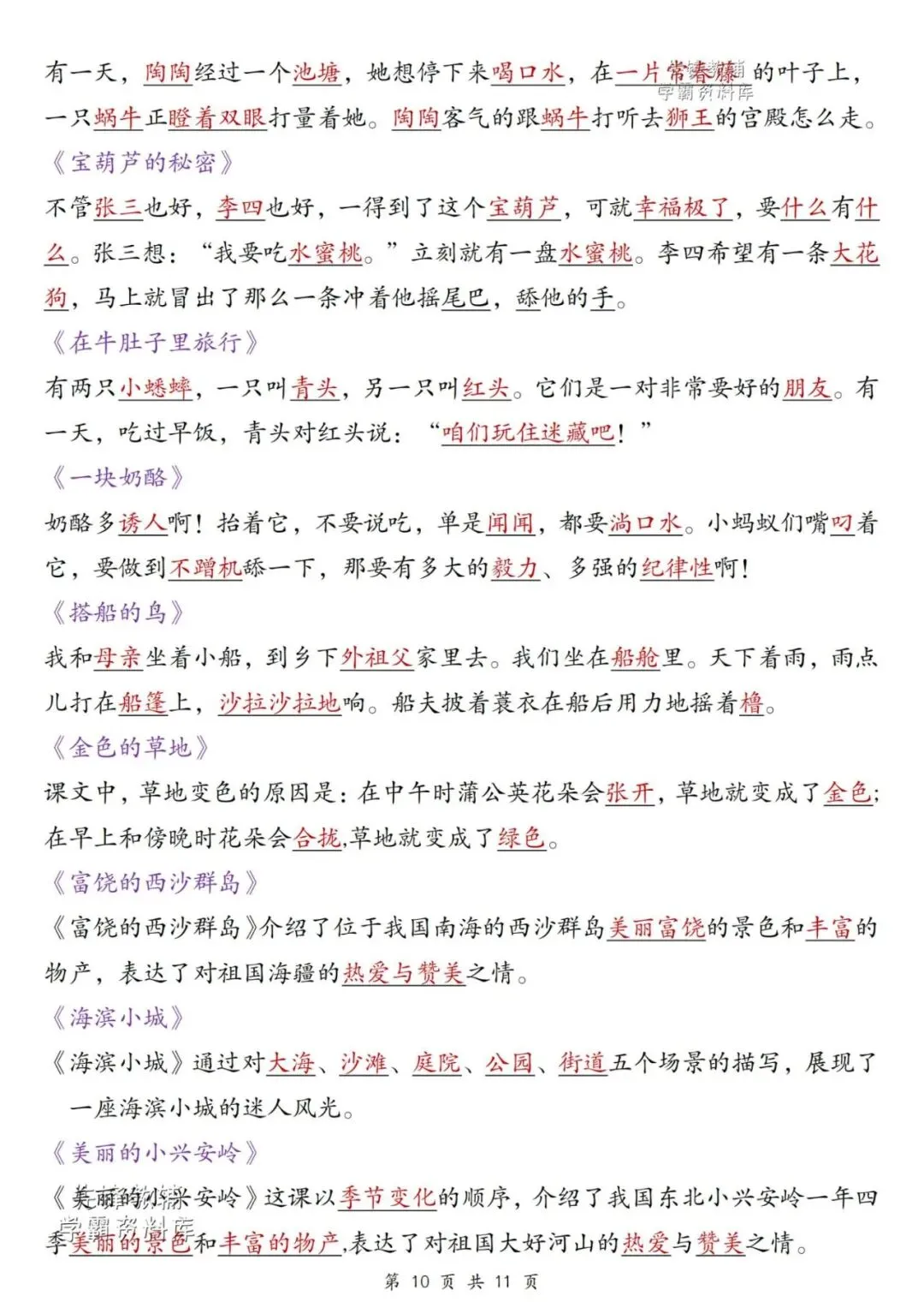 【资料整理】三年级上册语文期末综合复习提纲