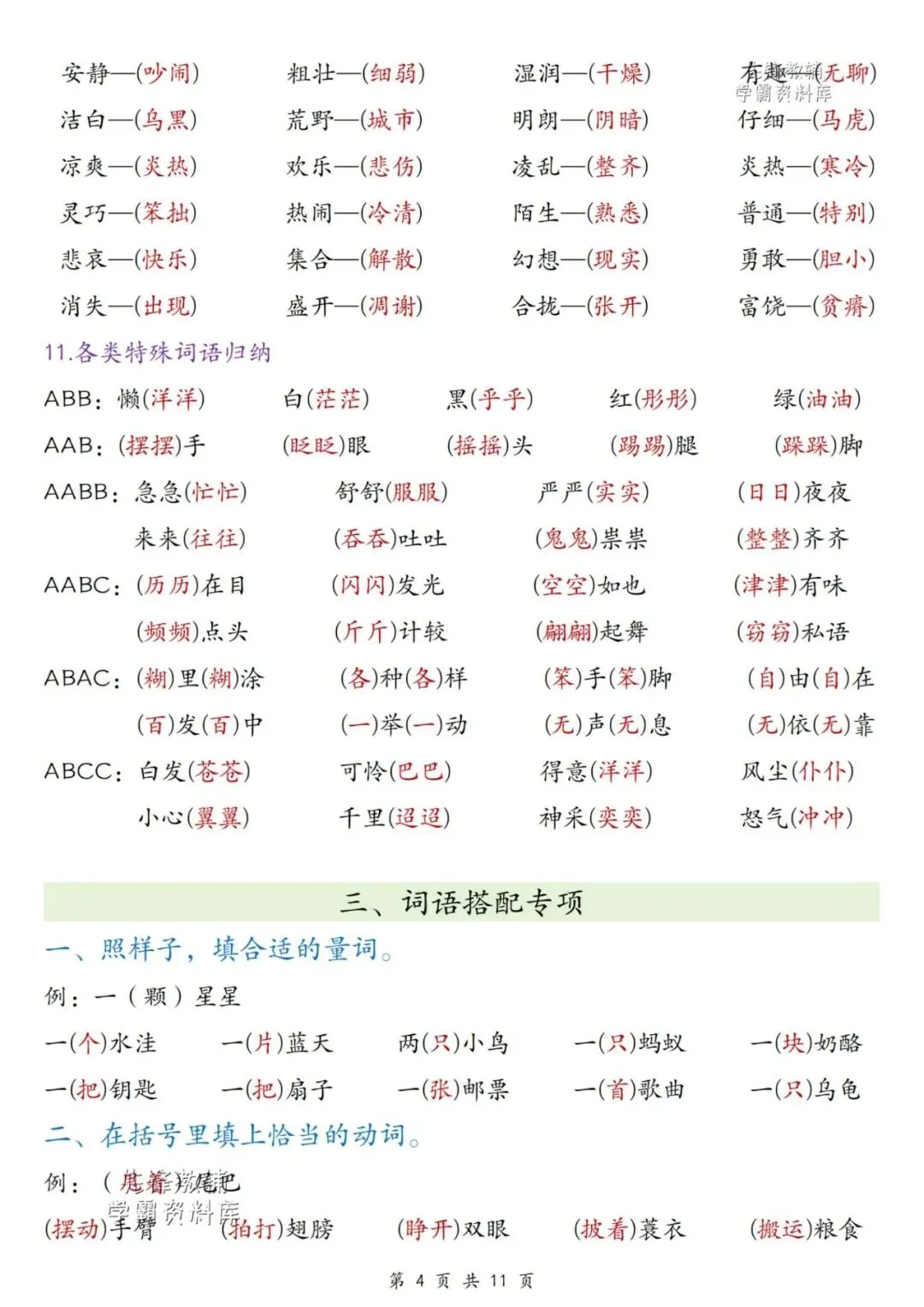 小学四年级期末复习资料