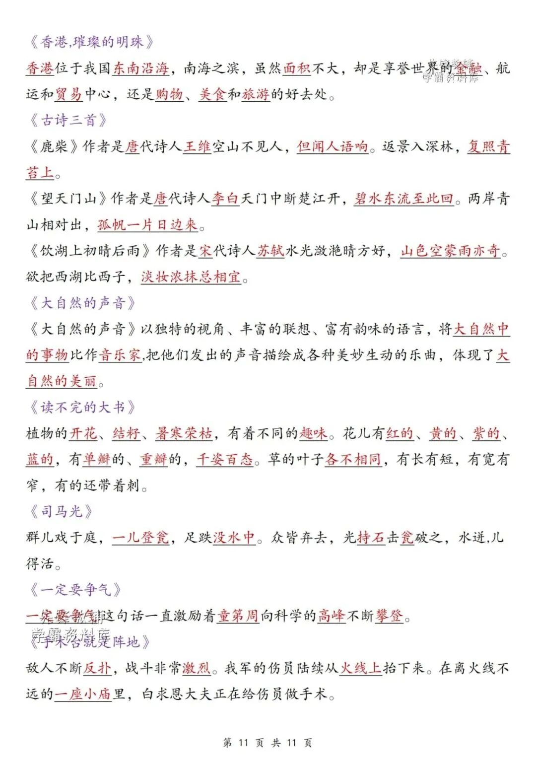 期末复习好资料!六年级1-8单元考点总结!