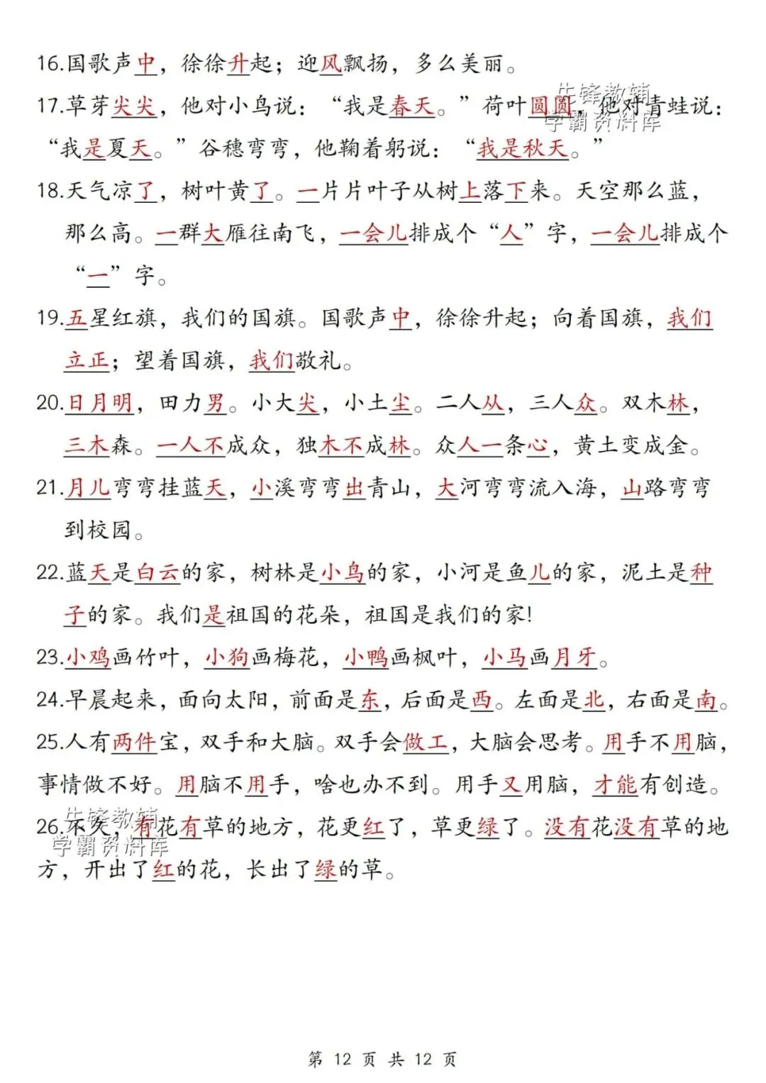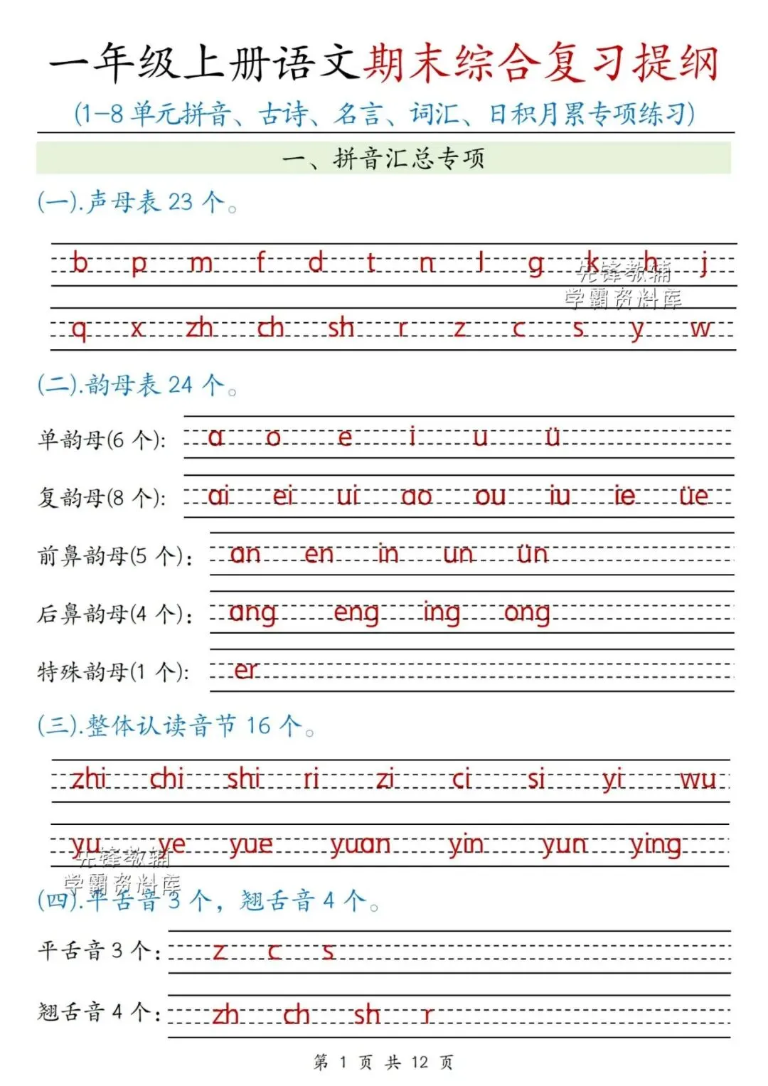 【资料整理】一年级上册语文期末综合复习提纲