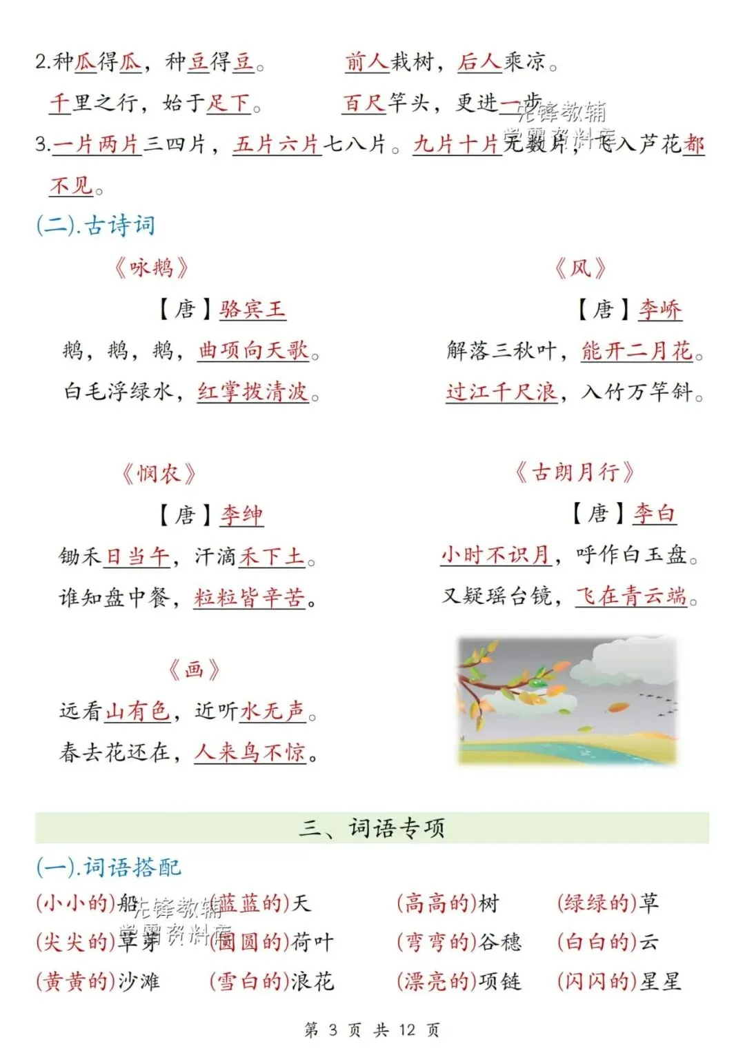 【复习资料】2026人教统编版小学三年级语文上册多套期末综合测试卷A3/A4排版含答案(全套下载)