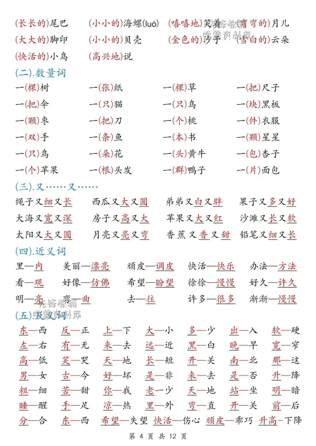 小学四年级期末复习资料
