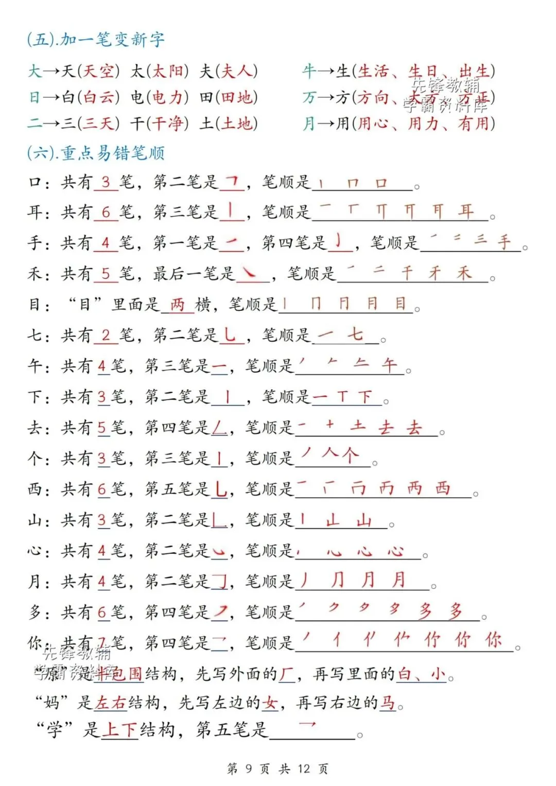 >【资料整理】一年级上册语文期末综合复习提纲