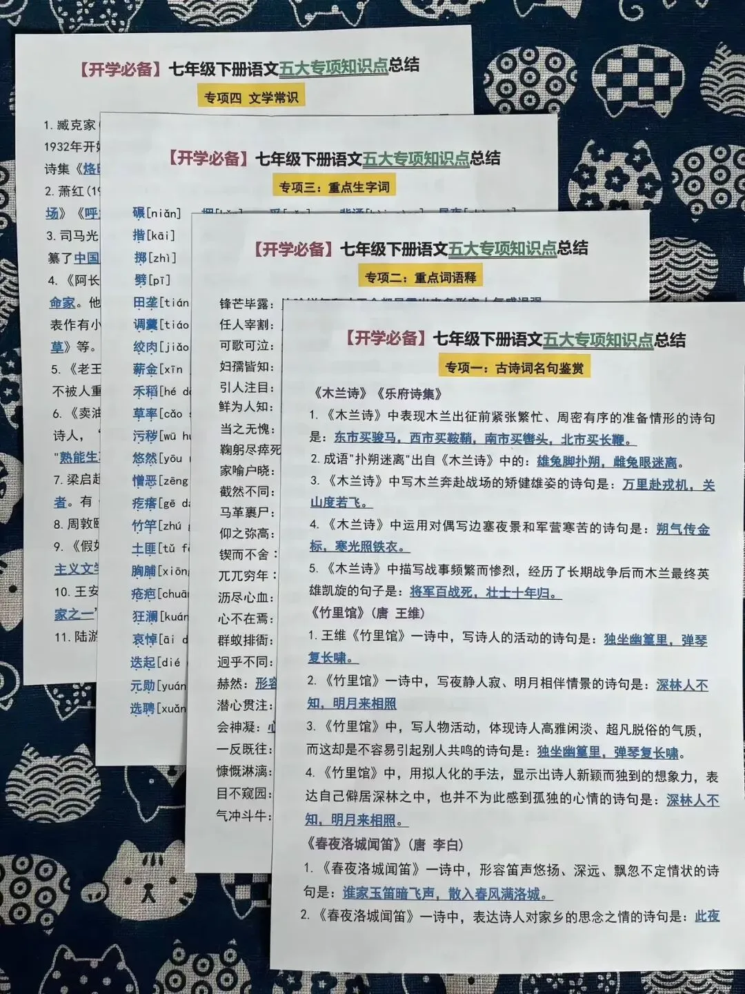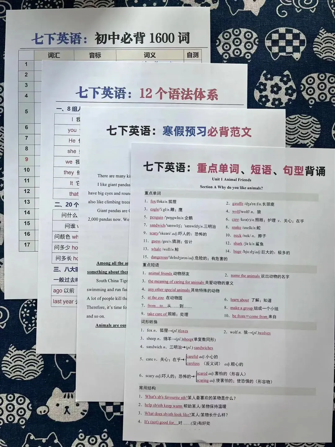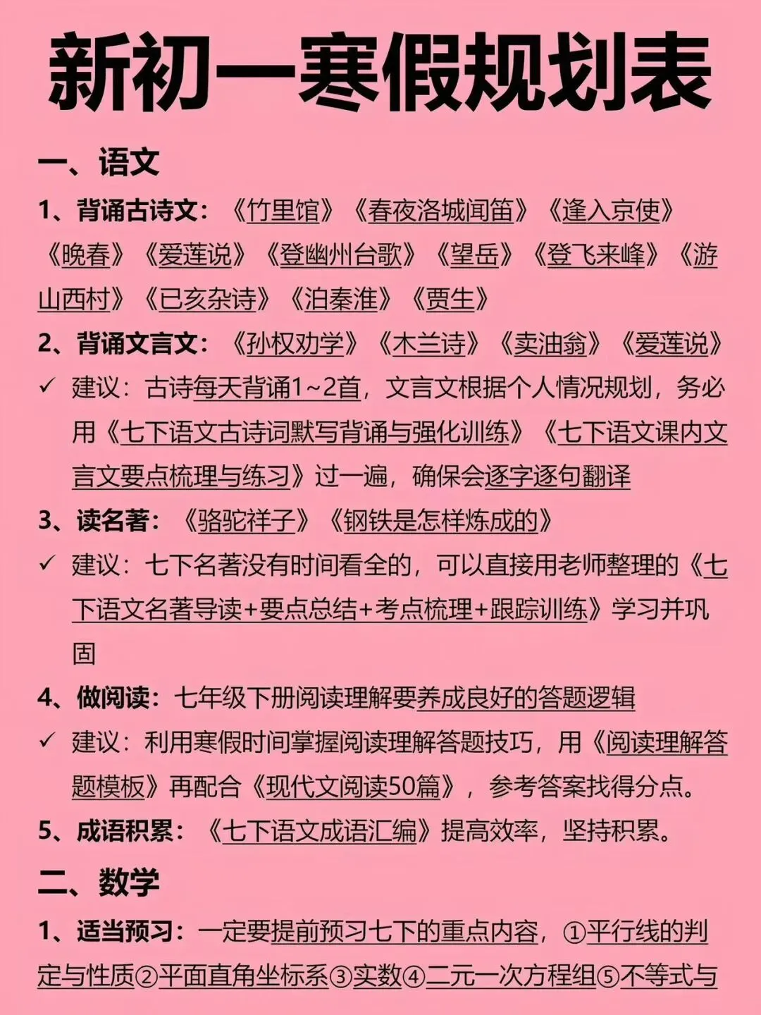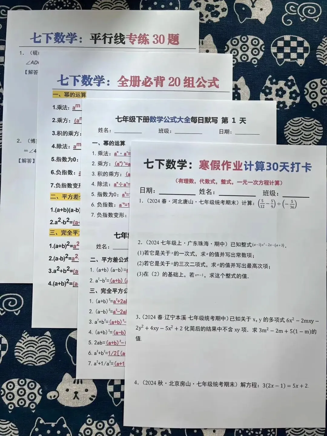 七下各学科寒假复习和预习资料包