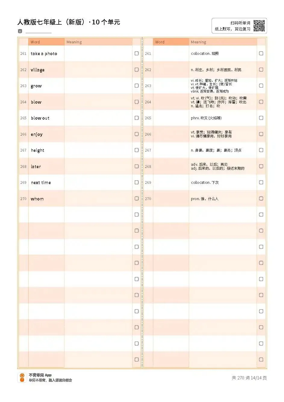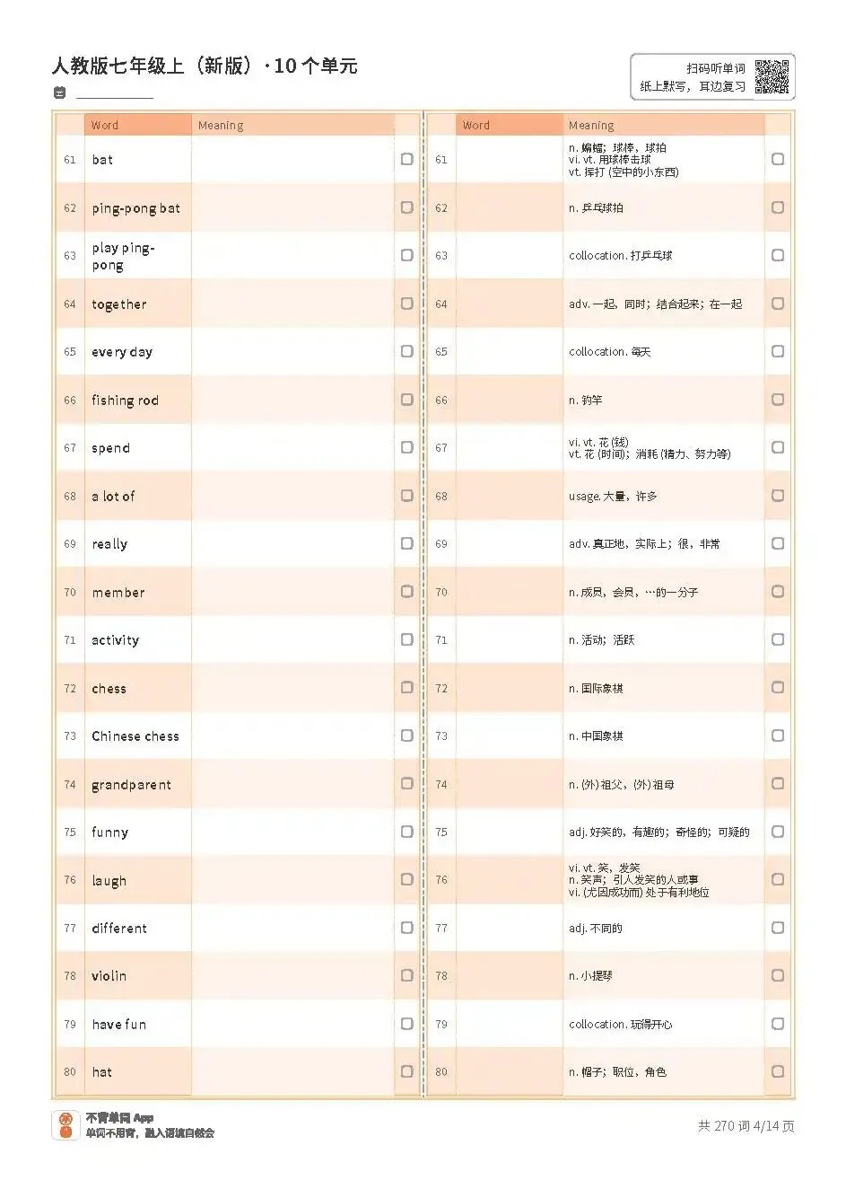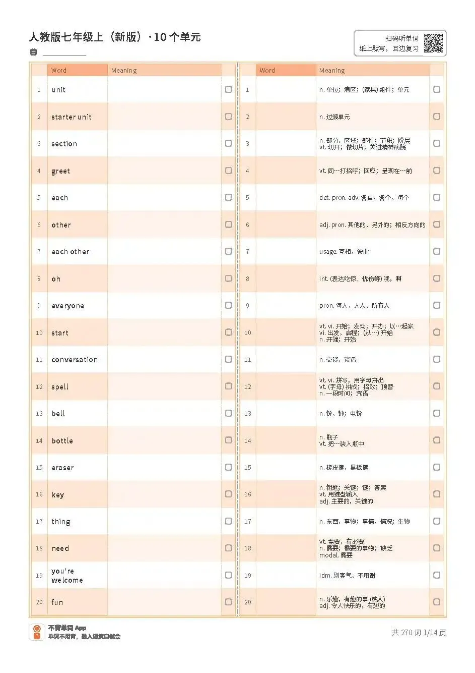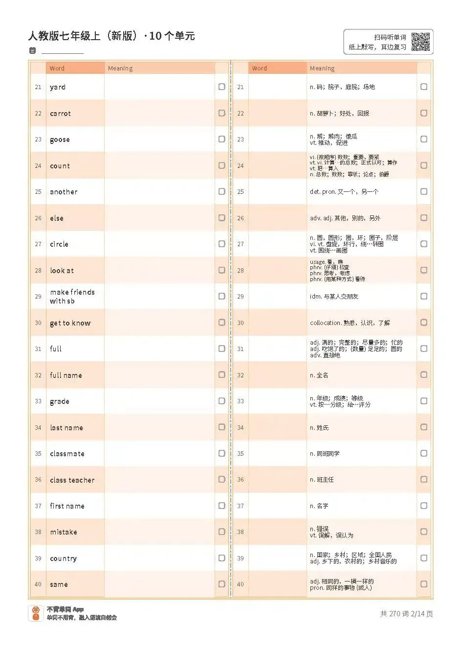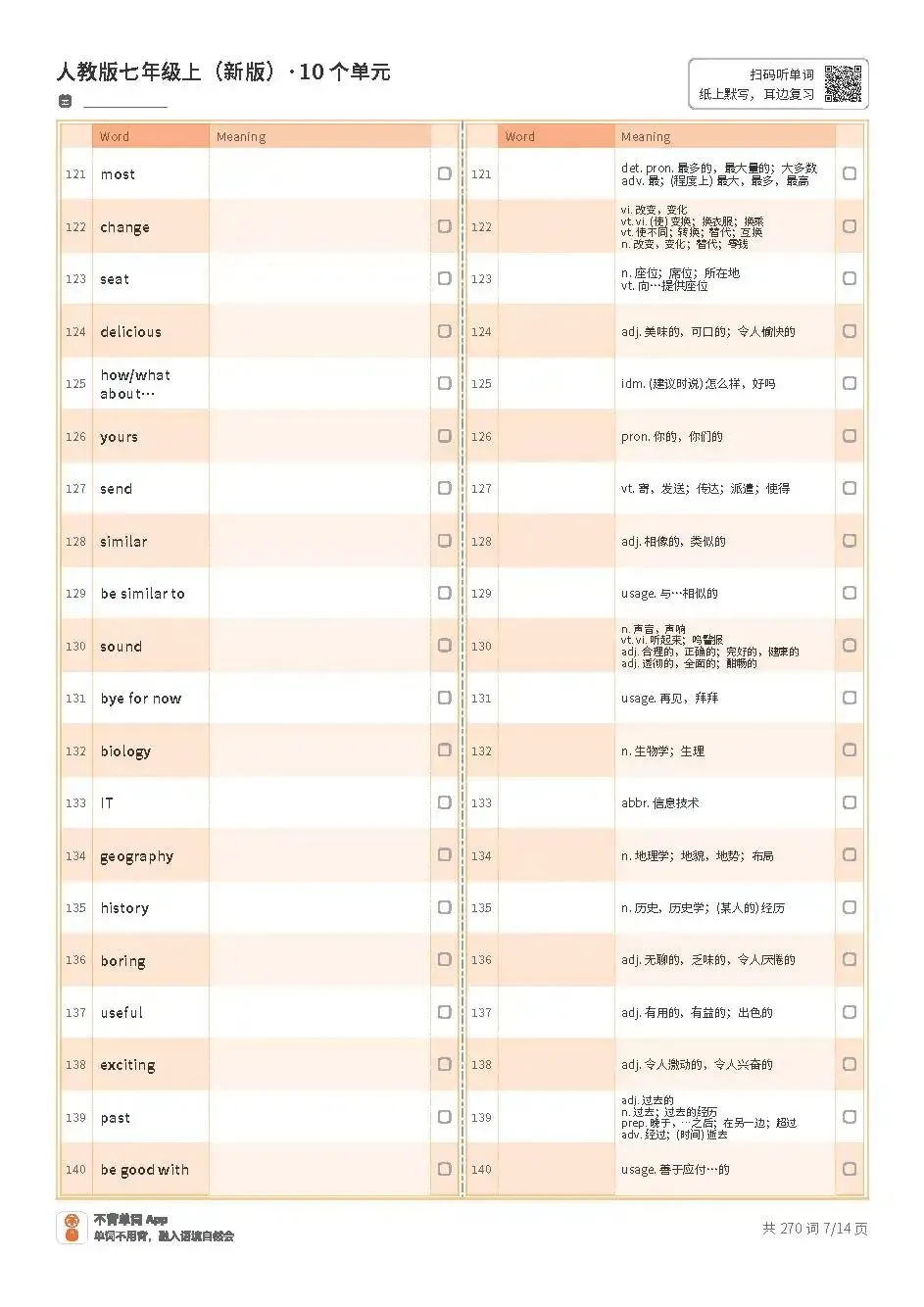 七上单词表高清版pdf