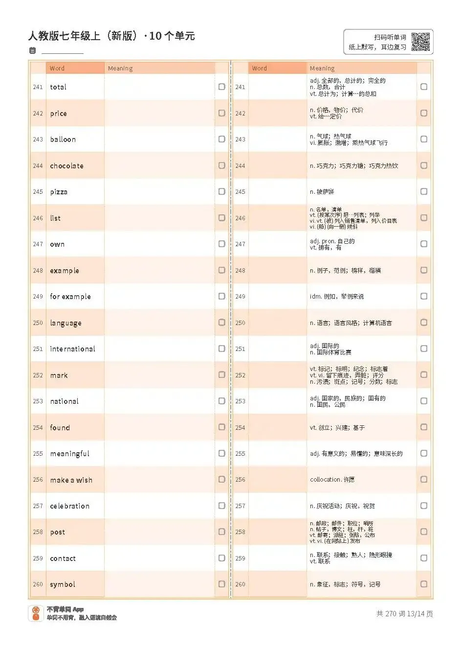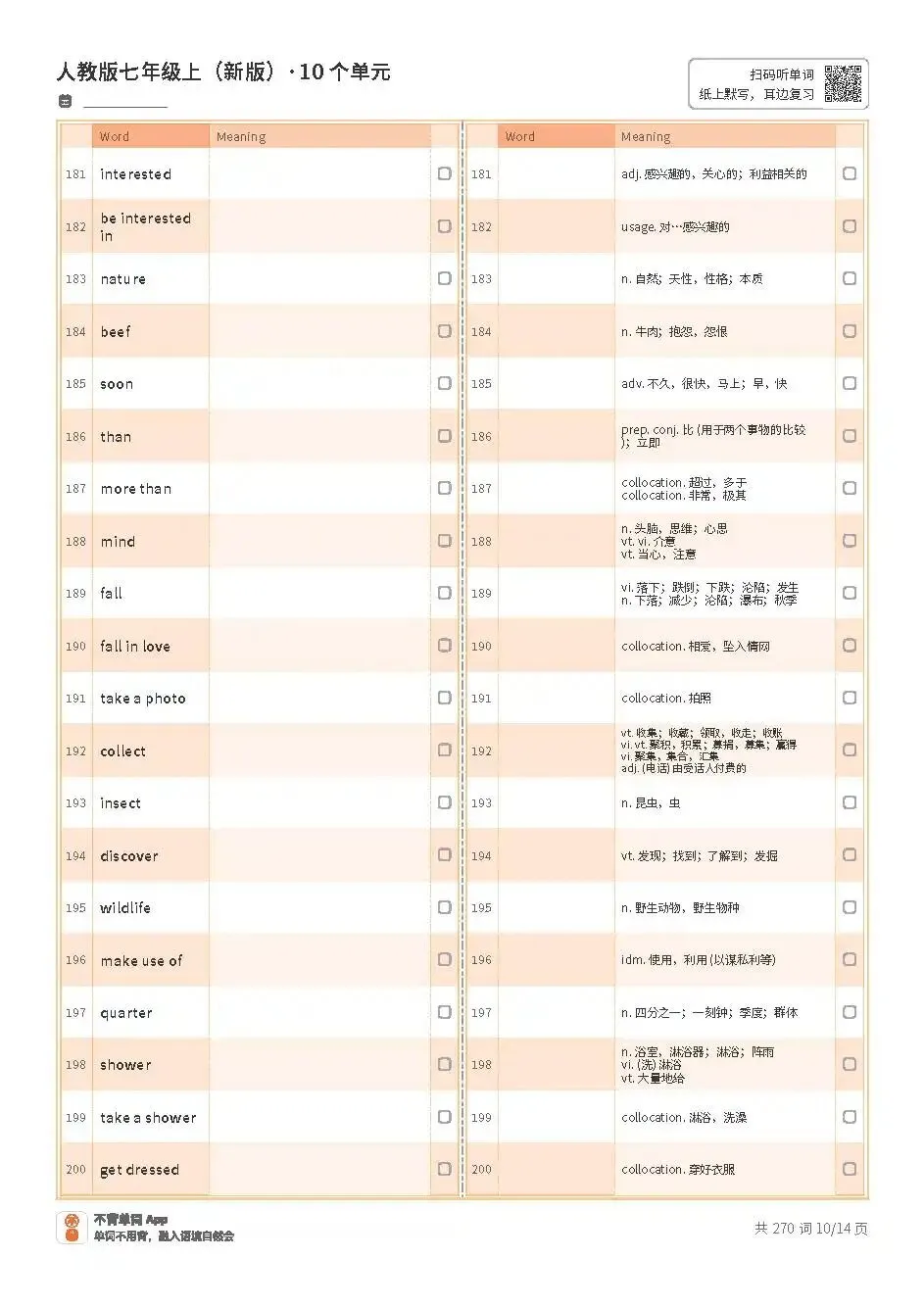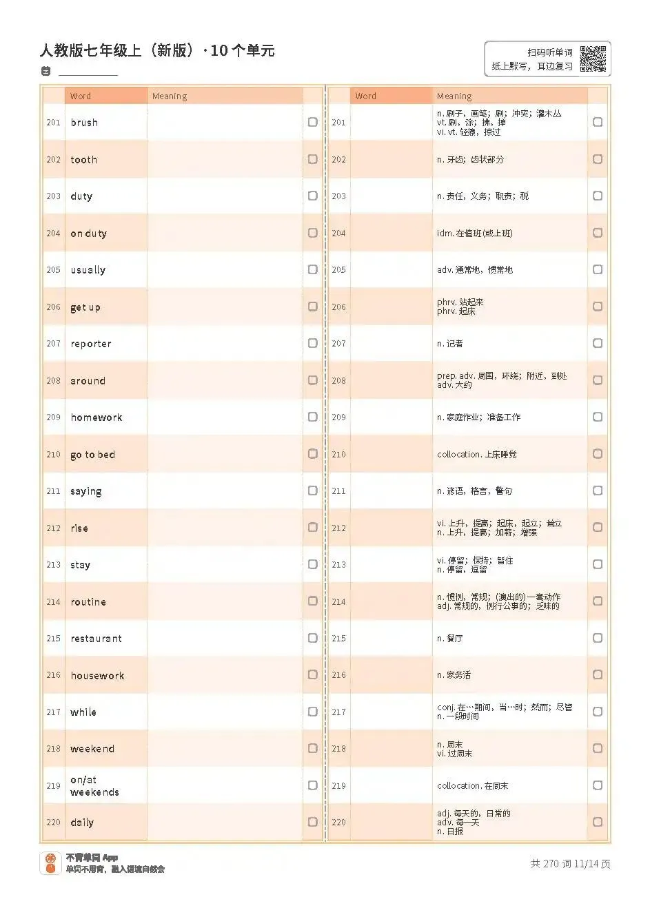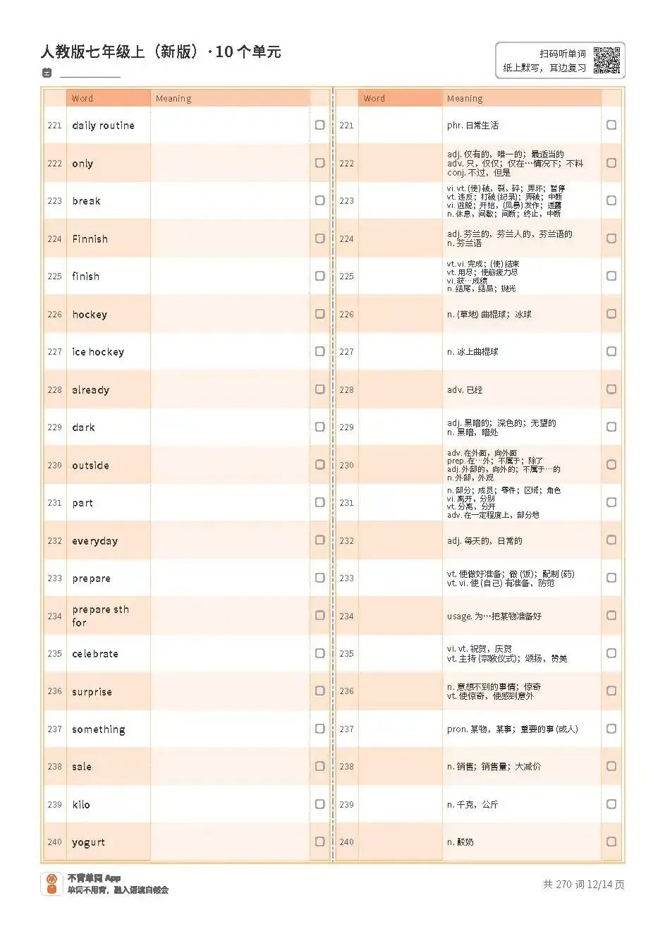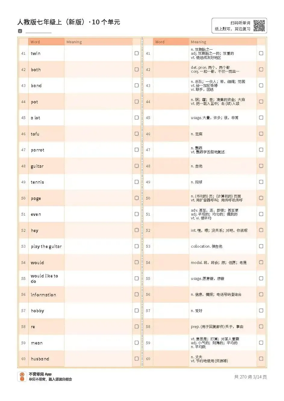 七上单词表高清版pdf