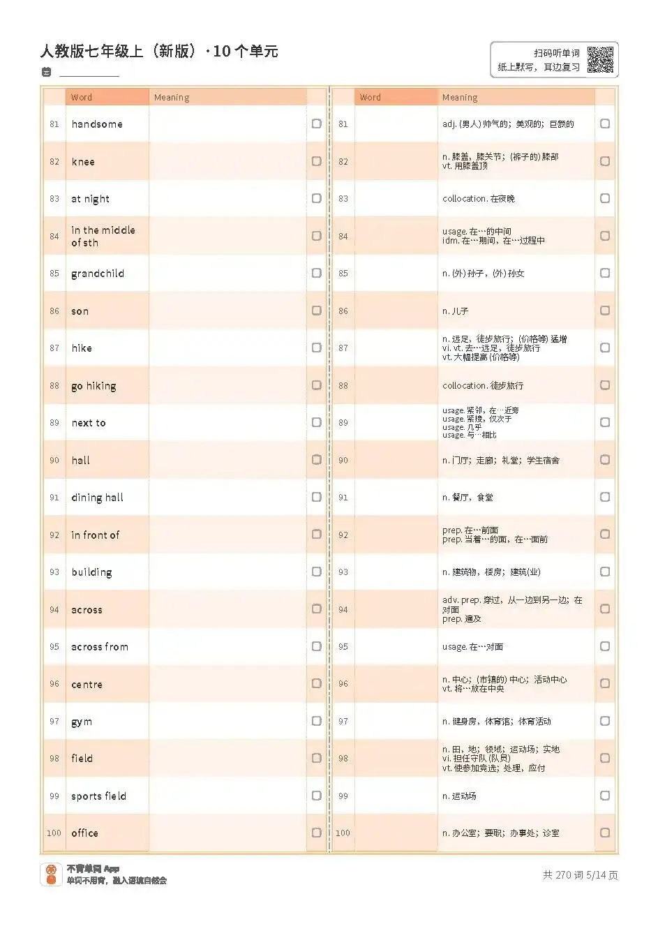 >初中期末复习 | 新人教七上英语Starter Unit1~Unit7单词表(适合打印练习,文末内附PDF免费获取方式)