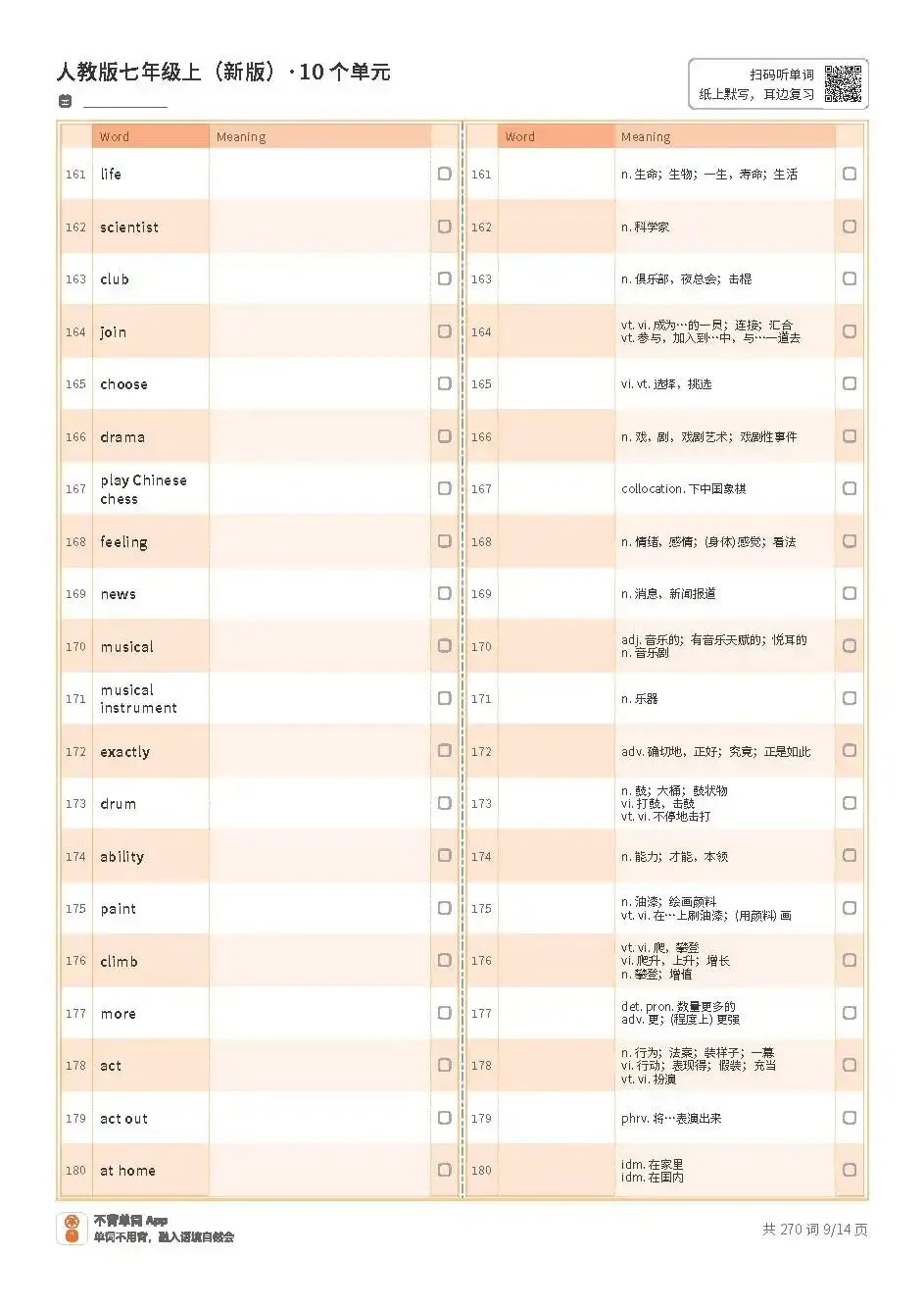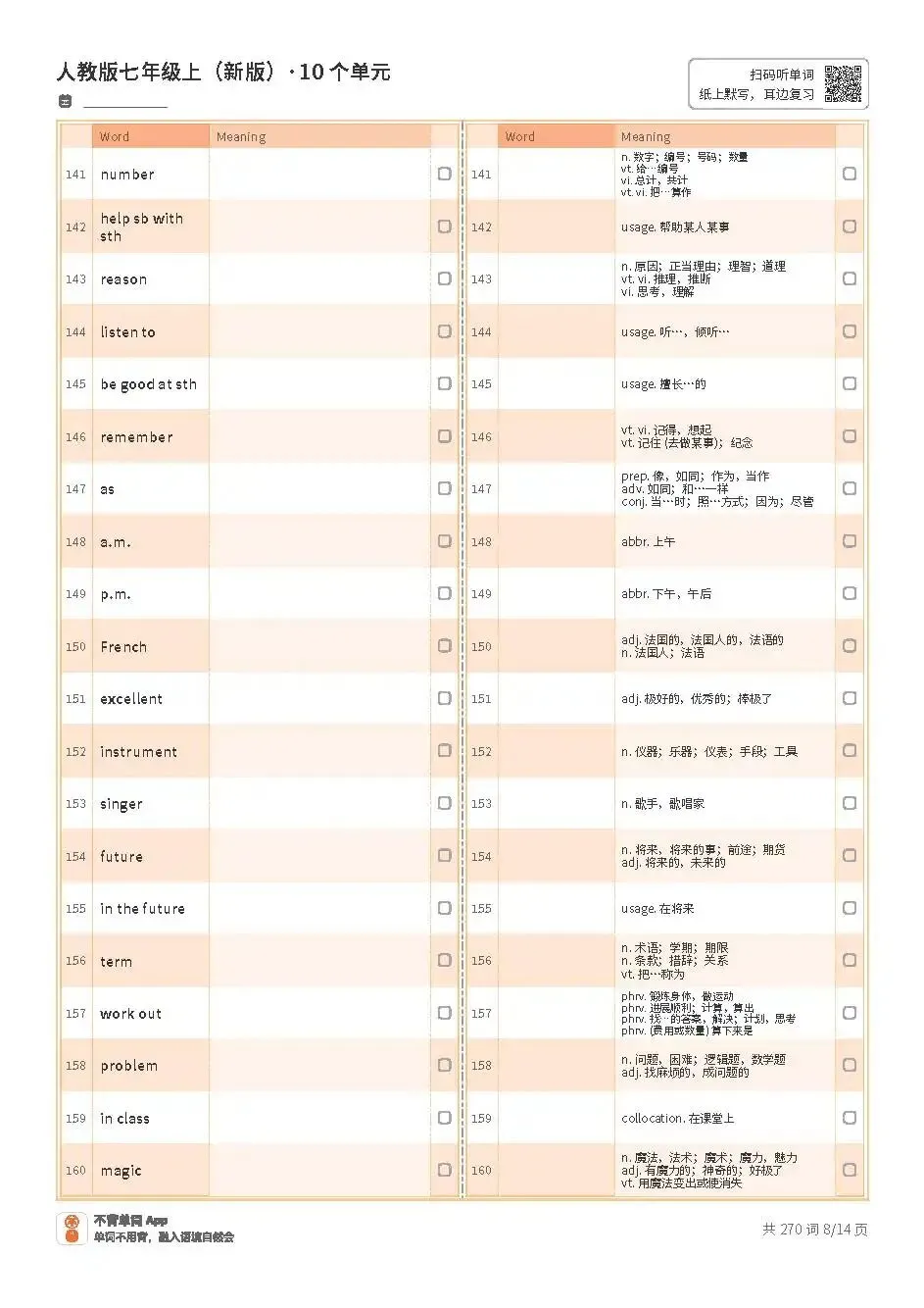 新人教七上英语单词表顺序版(共270词)